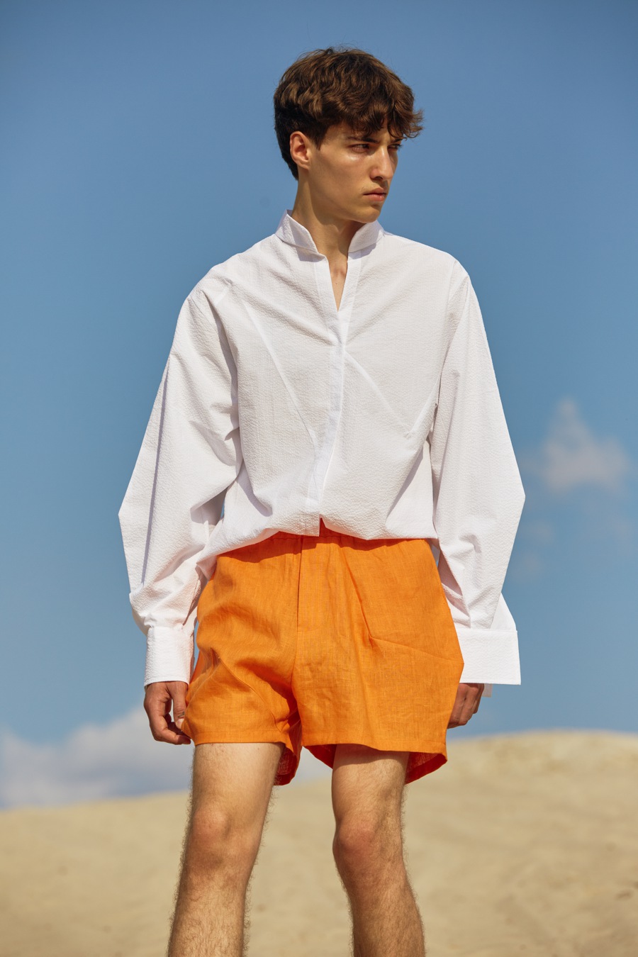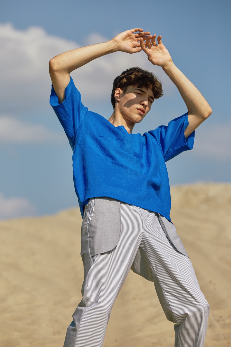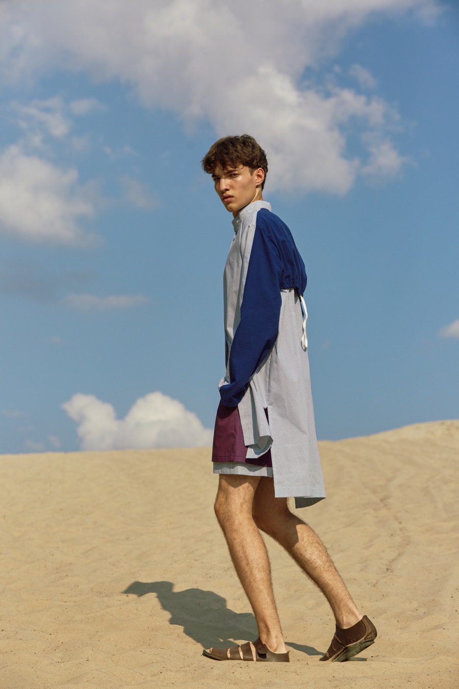 Sistan Varvara presents the first men’s collection Sistan Varvara Homme SS’2020, created under the influence of Gus van Sant’s movie «Gerry». The main idea of the collection is a journey in the desert, as a reflection of wandering within the mind. A desert is like a blank sheet, where there is nothing superfluous and far-fetched or imposed, only a person alone with his mind and feelings, where the specific moment of the process is important, not the result.