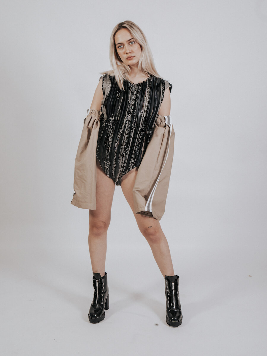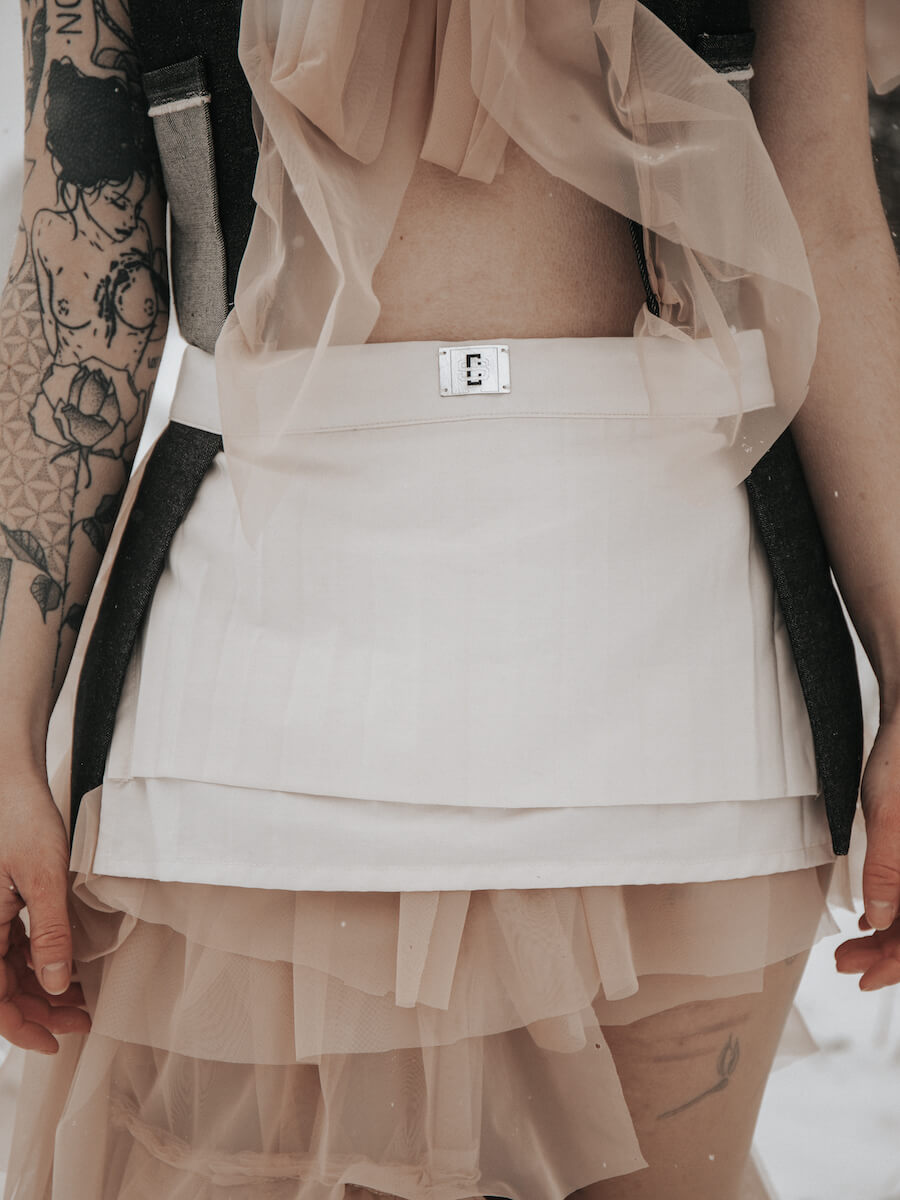 So I began extensive research into personality formation and development, diving deep into personality psychology. I developed a collection to show my own development from birth to the present day. I dealt with general topics such as origin, genetics, gender roles, dreams for the future and also topics that unfortunately are not heard enough today: mental and physical illnesses.