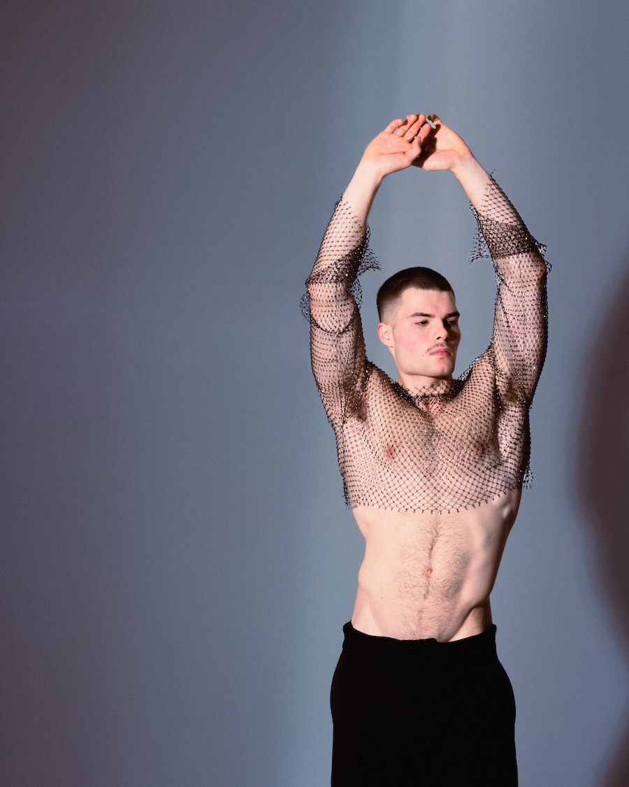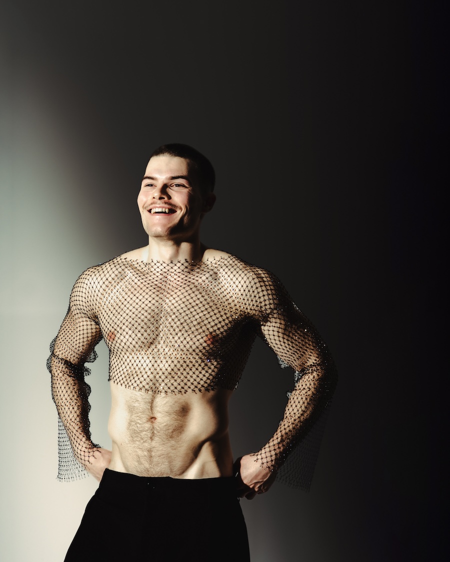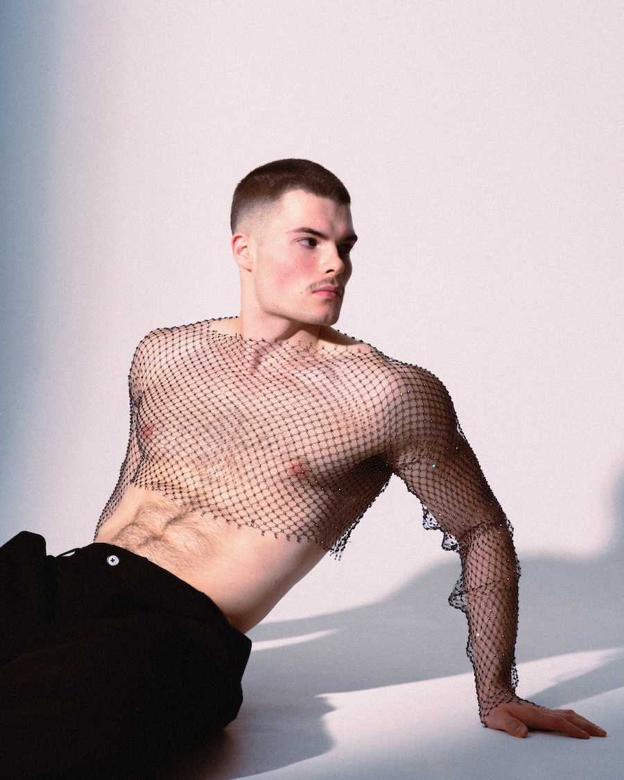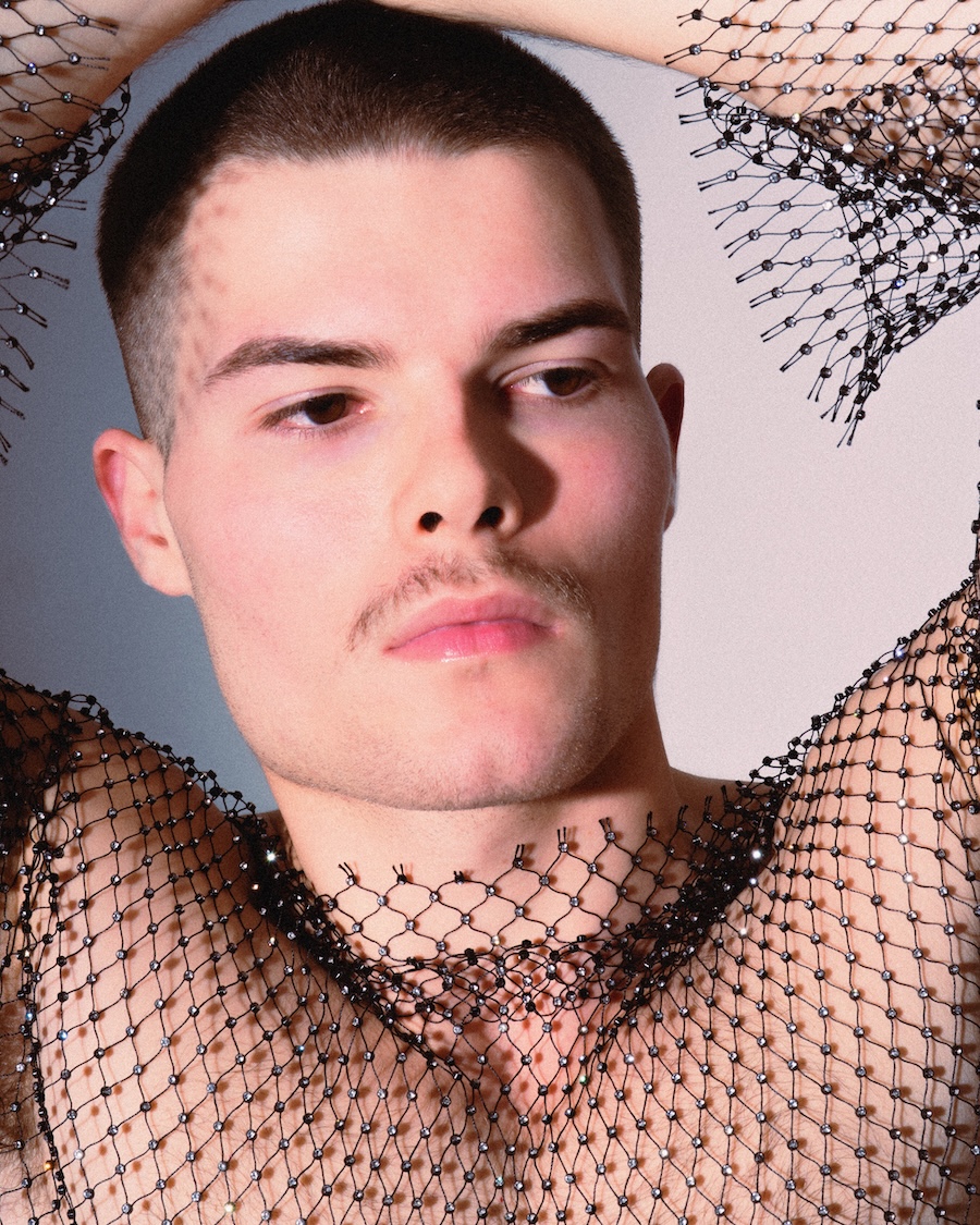 A KALTBLUT exclusive. Photographed and Styled by Grzegorz Serczyk. The model is Kacper. “SKINFRAME” plays on the tension between exposure and construction, using mesh, corsetry, and light as structural elements that redefine the male silhouette. It’s an editorial where fashion sculpts the body — and the body becomes the purest form of style.