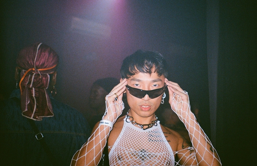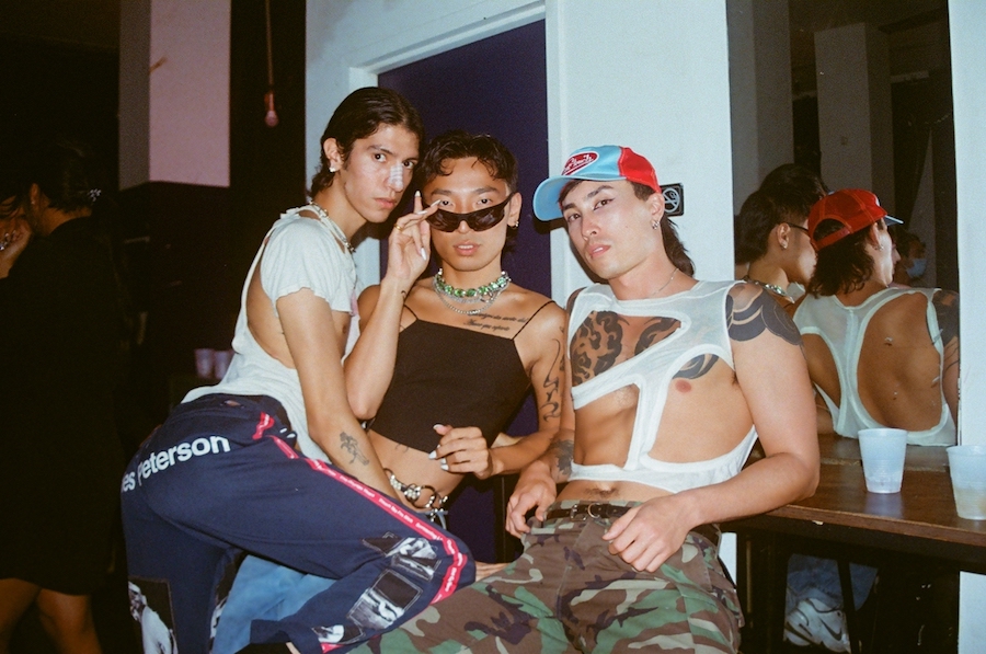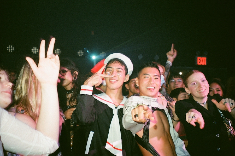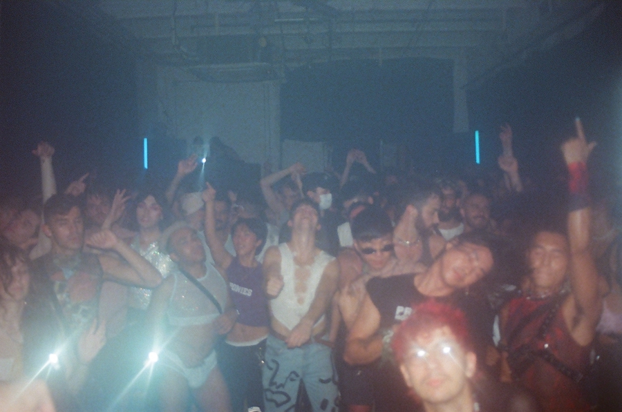 Photography by Matias Alvial. This collection of 35mm film photographs documents the many iterations of sksksks, a hyperpop rave series in Brooklyn, New York. The founder of the party, David Chan, also known as the DJ THELIMITDOESNOTEXIST, aims to create a safe space for queer, trans and nonbinary partygoers. In addition to providing face masks and ear plugs as a safety practice, sksksks offers fentanyl test kits and Narcan (naloxone) in efforts to protect the community given a recent rise in overdoses from laced drugs.