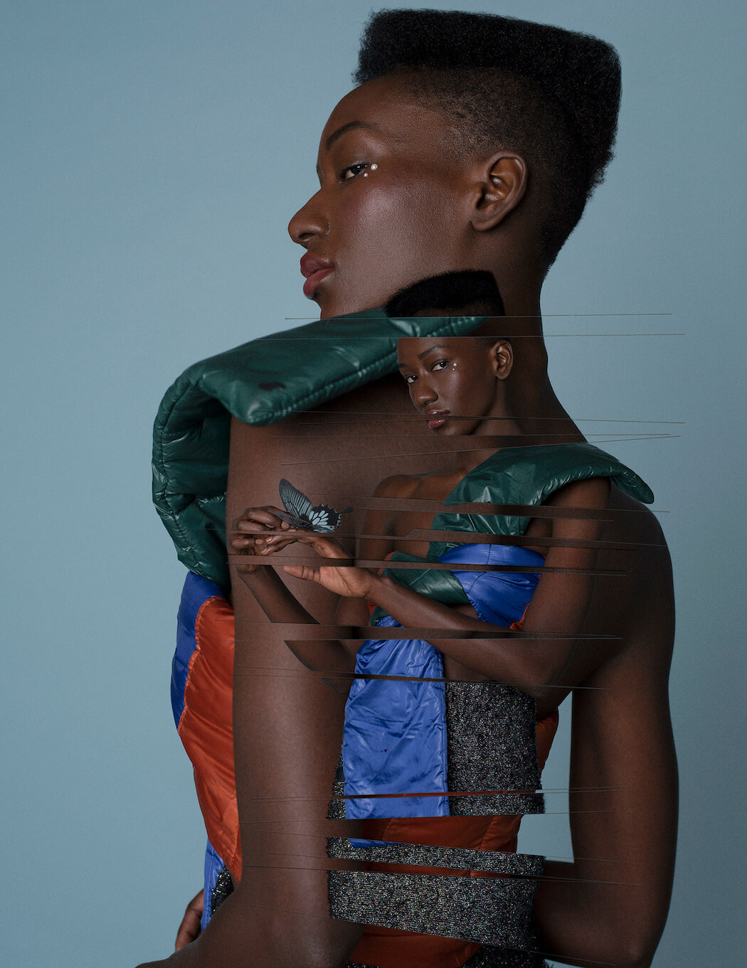 A KALTBLUT exclusive. Photography & Retouch by Slavica Veselinović. Model is Penda Niass signed at Nologo Agency Milano. Mixed media artist by Rebecca Coltorti. Art direction & styling by Stela Plaka. Make up & hair & styling assistant by Nataly Bondar.