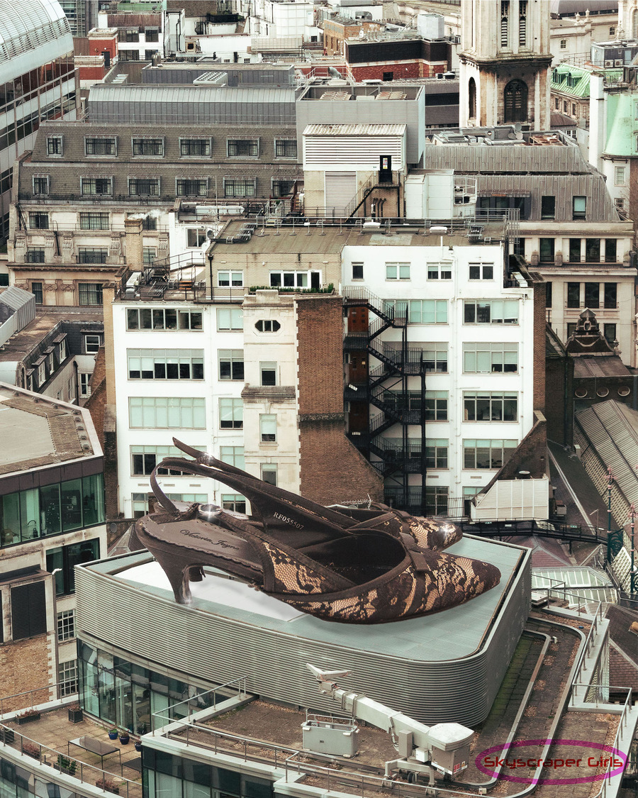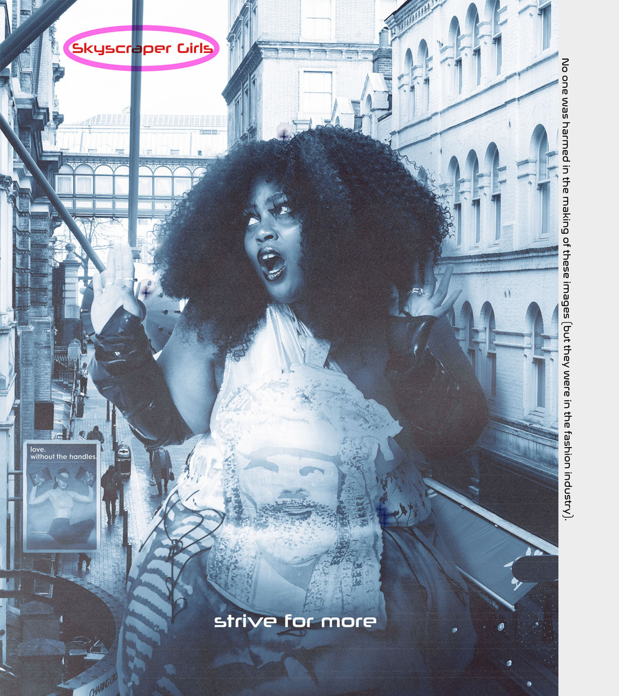 “My work aims to bridge the gap between social commentary, the fashion industry and photographic art. My most recent project is no exception. This series is titled ‘Skyscraper Girls’ and is a representation of my experience as a curve model in the fashion industry. It expresses the heart-sinking feeling of being forced into too-tight clothes, of ripping seams, popping buttons and breaking zippers… of feeling like the largest thing a company can think of, of being tokenised and seen as lesser. I believe that often the inclusion of plus size and curve models is celebrated so greatly, with no thought on how badly those models may have been treated behind the scenes. There is a long way to go to ensure equal treatment in this industry, and campaigns like the recent Emily Ratajkwoski disaster were the final push for me to express my disdain for fashion fatphobia.”