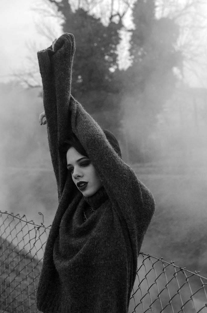 A KALTBLUT exclusive womenswear editorial. Immersed in a smoky atmosphere, surrounded by the steam emitted by the warm thermal waters of northern Italy, this story by Mila F. floats through the air of a vague mystery and melancholic audacity. Model is Eleonora. Styling by Alessia Pigozzo. “I’m a young independent Italian photographer with a fervent passion for nostalgic, grunge imagery, always looking to recreate a dreamlike atmosphere. My frequent dark moods accent the melancholy that only the vulnerability of youth can truly convey, a theme recurring in my works. I’ve been a freelance photographer for many years and recently teamed up with stylist Alessia Pigozzo, with whom I have created an online indie magazine named Dark Snow Magazine (www.darksnowmagazine.com / instagram: @darksnowmagazine).” says Mila F.