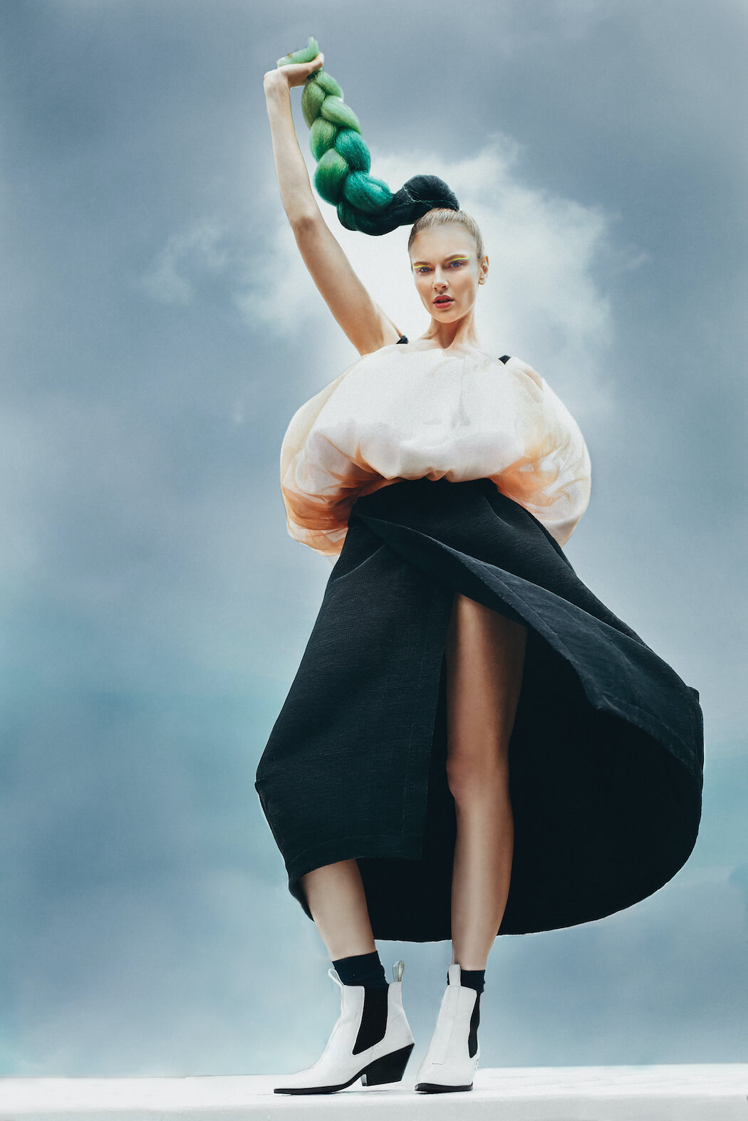 A KALTBLUT exclusive. Photography by Sebastian Montanez. Model Ekaterina Khramova signed at Agency Iconic Models. Doll up by Gina Tay. Styling by Elisa Restrepo Alvarez. Fashion by Olga Piedrahita, Leda and Yuu.
