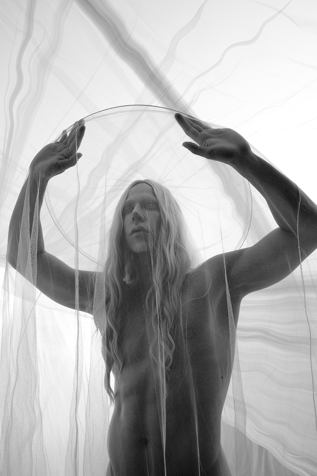 The photographic artwork “Solitude” is about a pure energy form growing in the dark and exploring the pain as it becomes bigger and pureness. It is about a positive becoming a negative becoming a false positive.