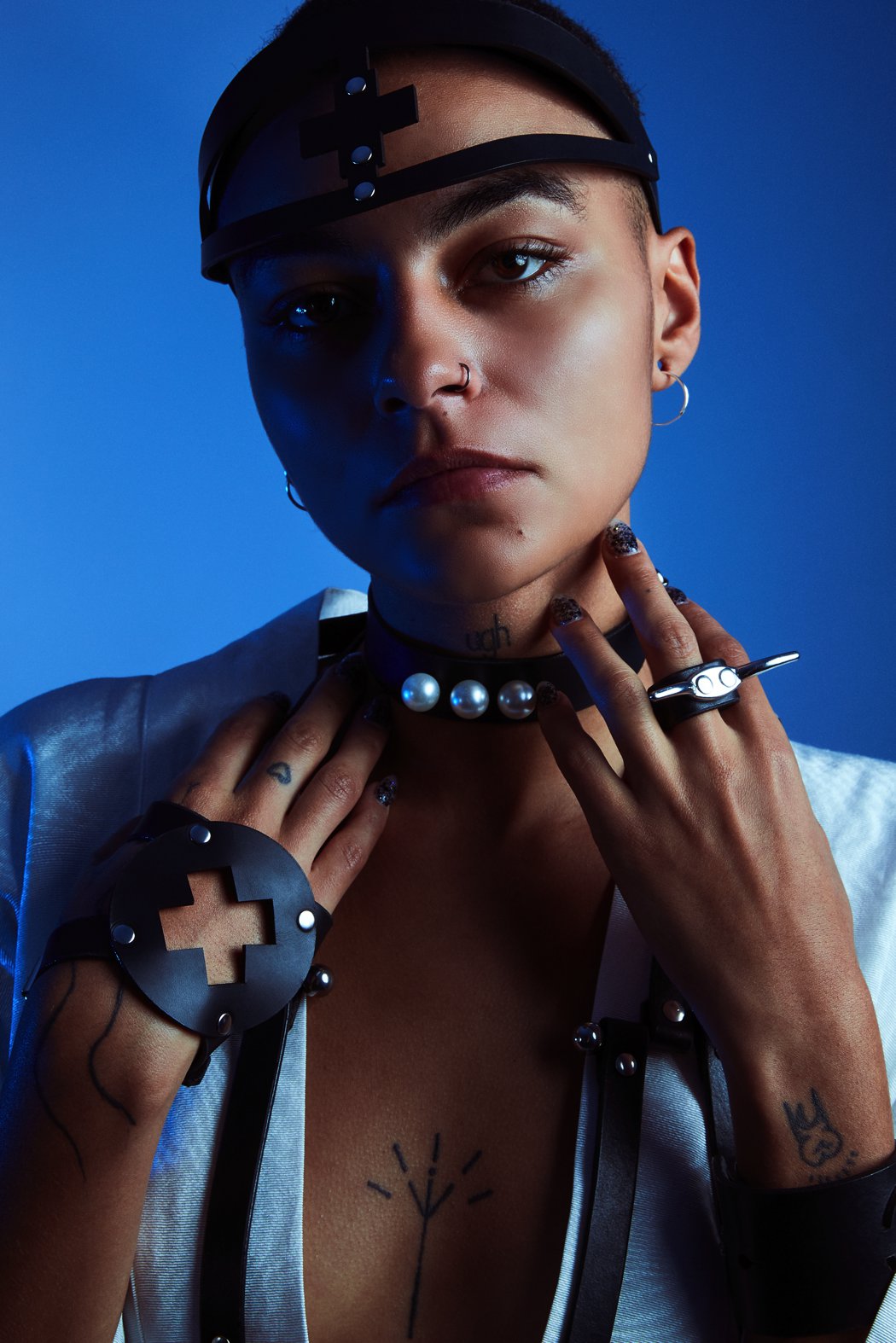 KALTBLUT presents Soma! The new collection by Berlin based accessories brand PERLENSÄUE. Photography by Florian Nitsch. Model is Alexia Hahn. All accessories & styling by PERLENSÄUE. White body Patrick Philippe Lecoultre. White pants by Jade Helene Designs. Kimono from LEVEL Eight.