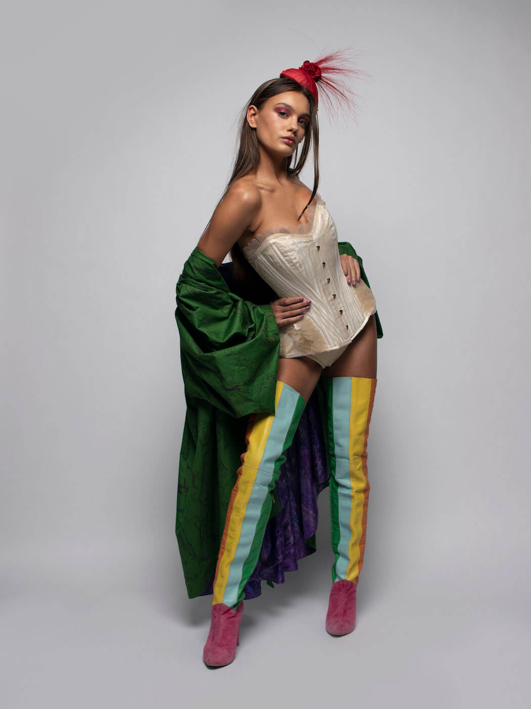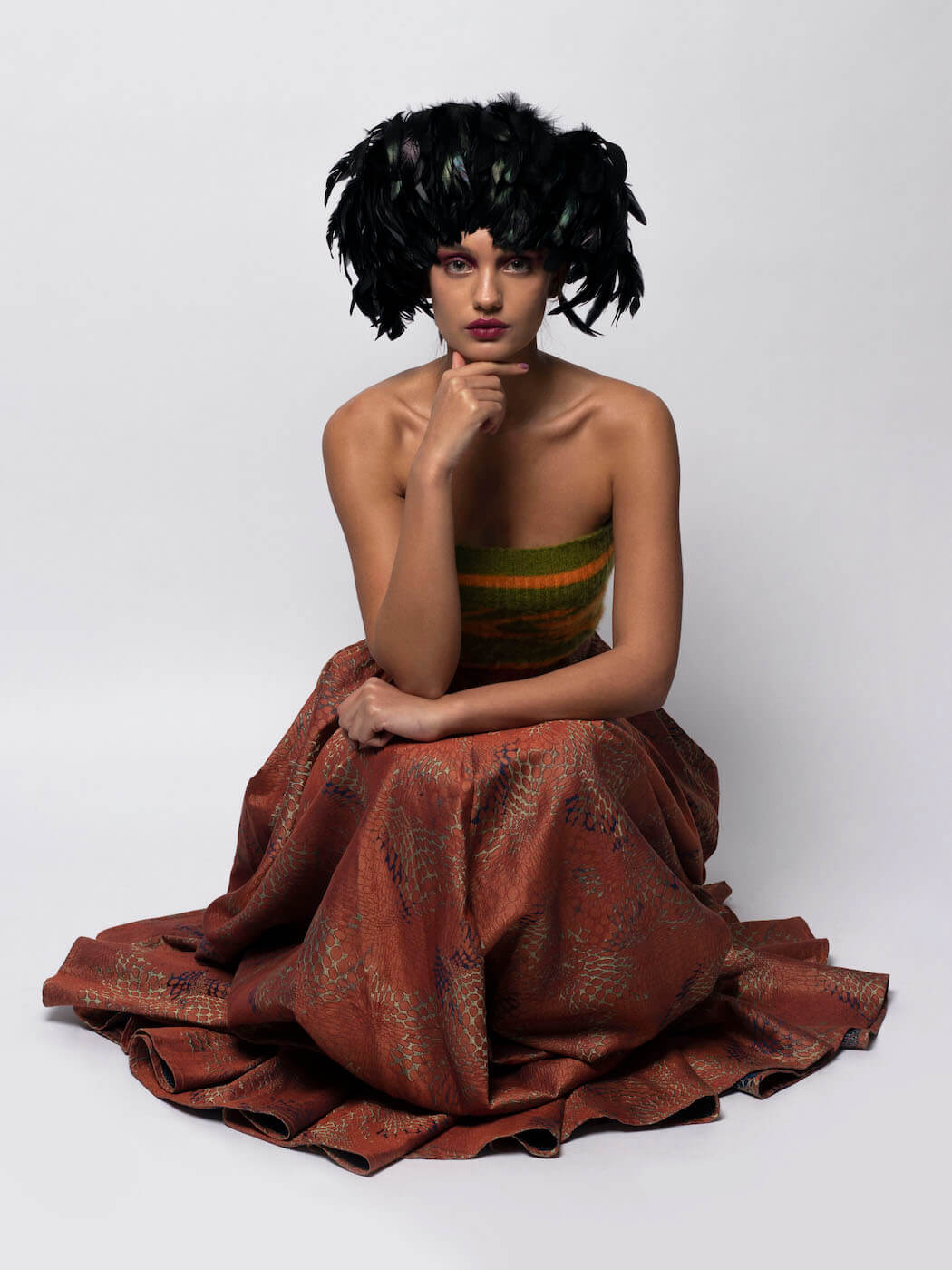 A KALTBLUT exclusive womenswear editorial. Photography by Benjamin Meredith-Hardy. Model is Laura Hope. Styling by Mariam Taiwo Sonekan. Makeup and hair by Kite Chuang. Fashion by Natalie B Coleman at Young British Designers, Charlotte Buchal & Iris Röell, Merve Bayindir Millinery, Jimmy Choo, Fiona O’Neill at Young British Designers, Peco amongst others.