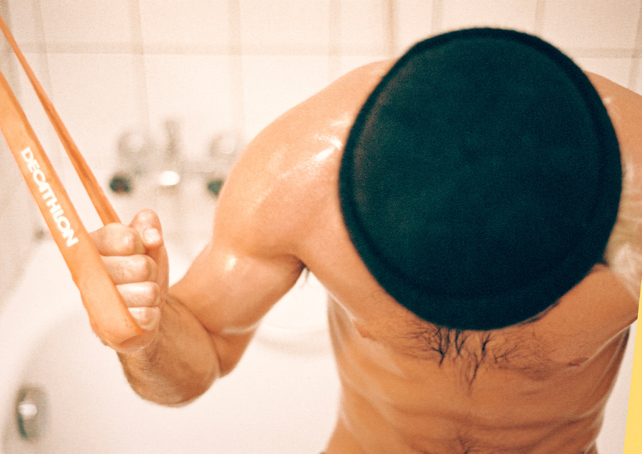 ‘Sore muscles’ is a series exploring his vision of new masculinity. The images he produces work as a window onto his personal conflict between being a ‘real man’, the role framed by society over time which he unconsciously stands by, and his own belief in the kind of man he should be.