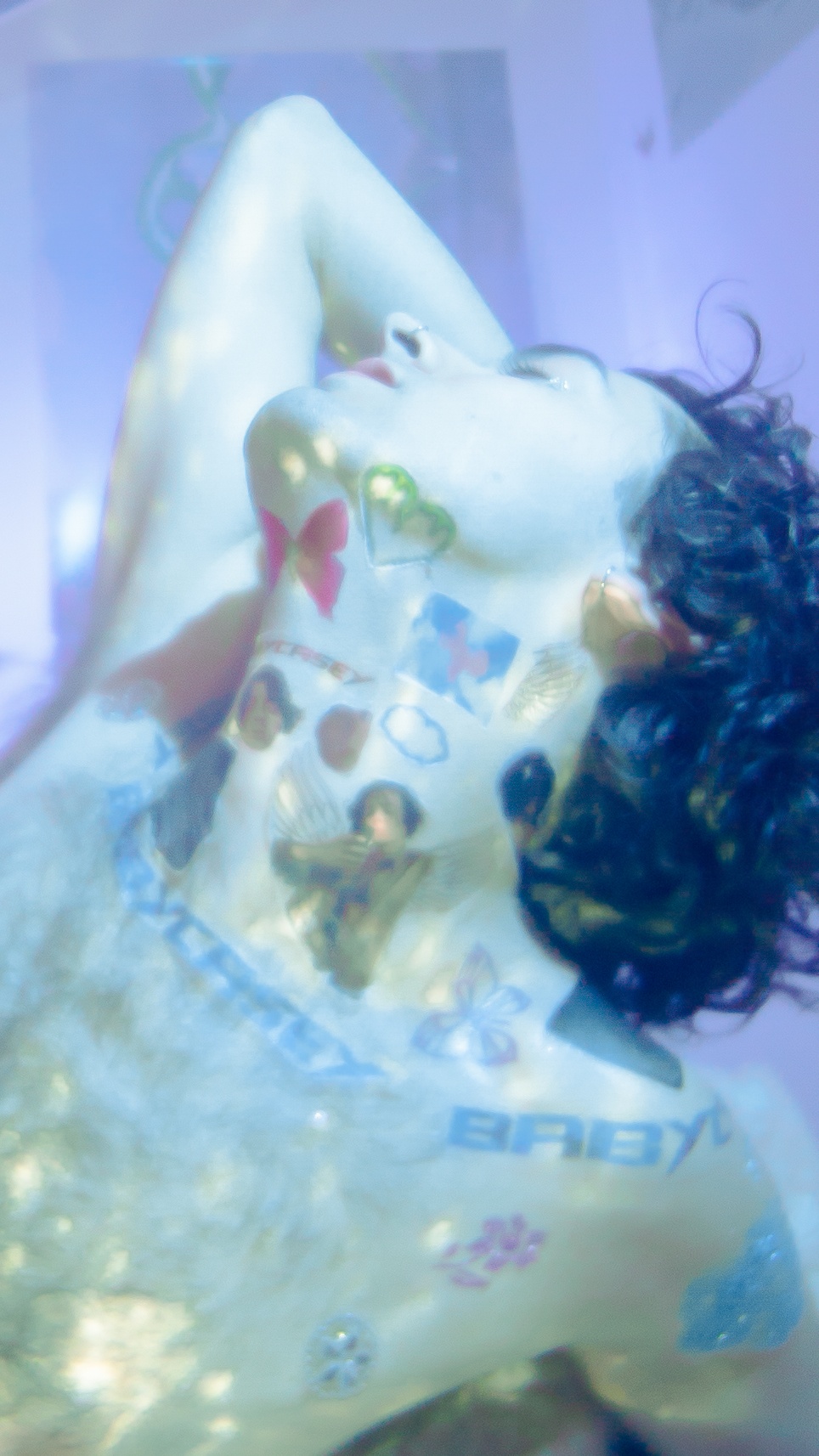 “Watching old tapes of myself over the past year, I realize much of my childhood world was a multi-faceted obsession with boybands. Before even knowing about sexuality, I was seduced by their guise of desirability: a 5 men crew with subtle homoerotic tendencies singing about wanting ‘the girl’ and basking in the surrounding fandom. These images pervaded my childhood and plagued me with confused desire. I was enriched and enchanted by that world – I wanted every piece of it, I wanted to be a part of it. As I watched these videos, I saw the joy of a child living his dream in real-time. babycasey is playing alone: filming the band, introducing the band, performing as the band; he is every member, and the host, and the crowd.