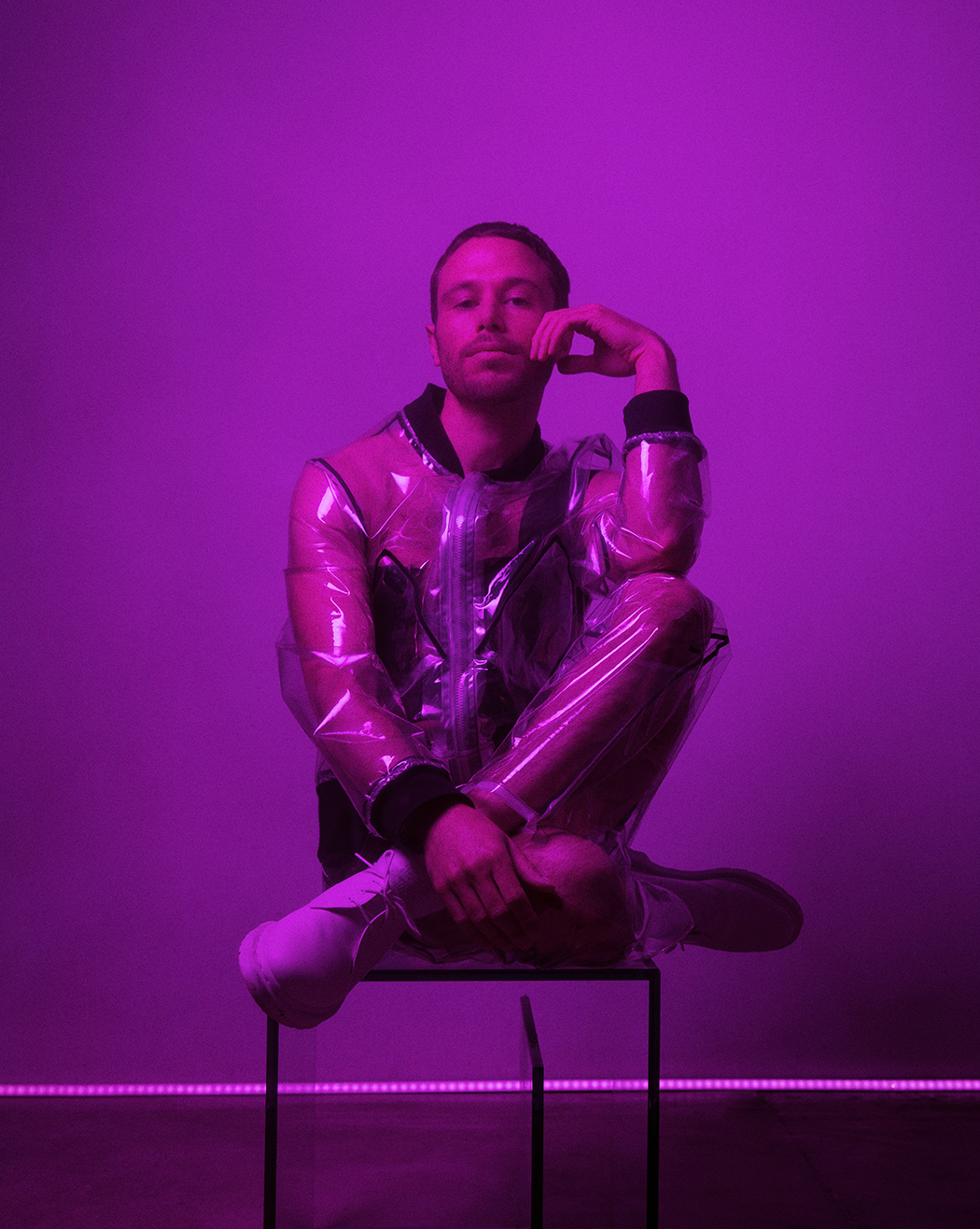 South London singer-producer and all-around creative visionary Semi Precious (real name Guy Baron) unveils ‘Other Life’ – synth-drenched art pop single released on the Squareglass imprint, that offers an immersive and emotional ride between the bounds of hedonism, melancholia and fleeting euphoria. As a frequent collaborator of fashion designers and visual artists, Semi Precious teamed up with Berlin-come-London designer Dhenze (David Henze), whose work explores notions of digital media, queerness and the blurring boundaries between the private and the public gaze. In this special, joint production, Semi Precious is captured by portrait photographer Barbora Mrazkova wearing Dhenze’s all-PVC, concept piece – a visual interpretation of the tension between hedonism and fragility, as realised in the newly-released track ‘Other Life’.