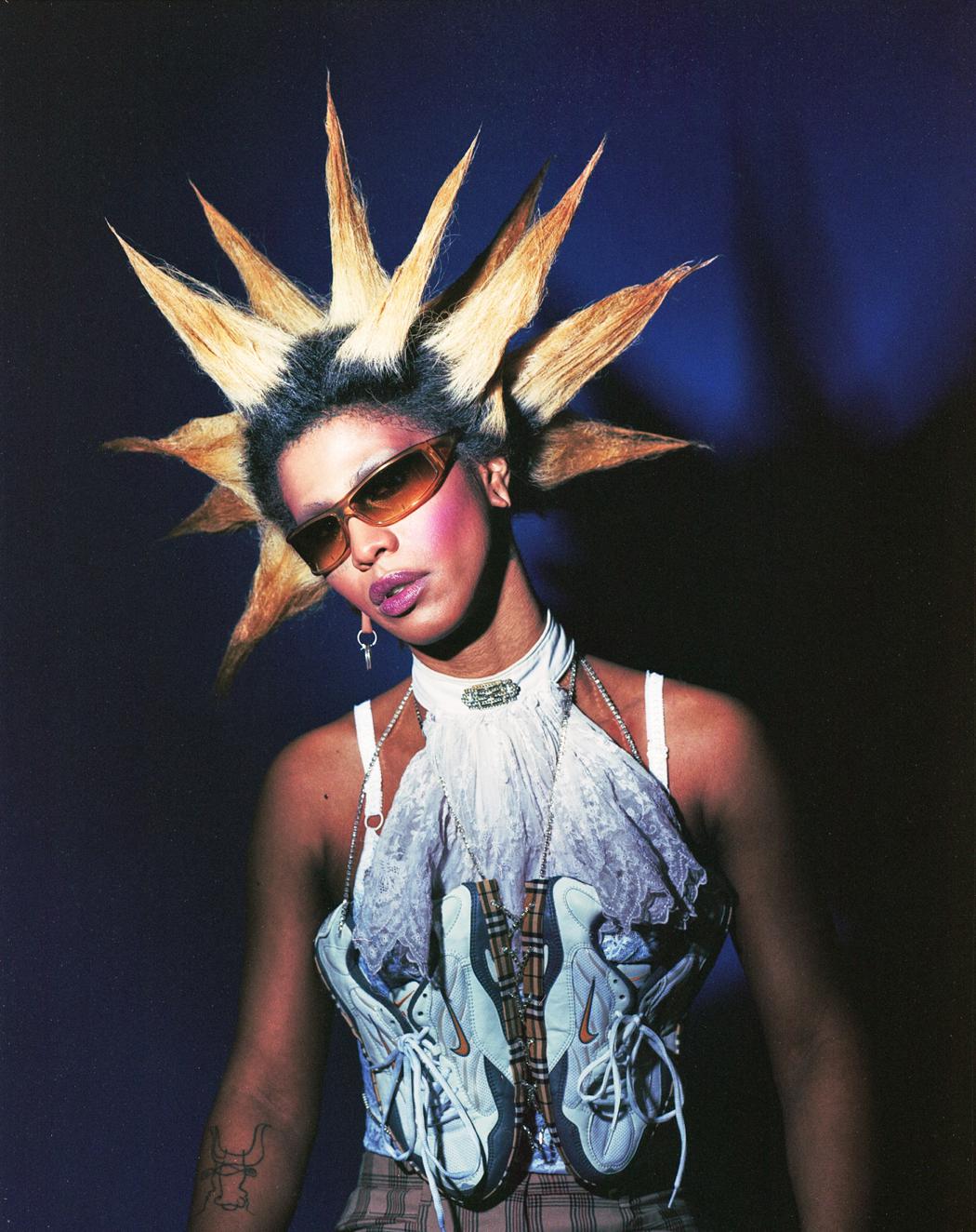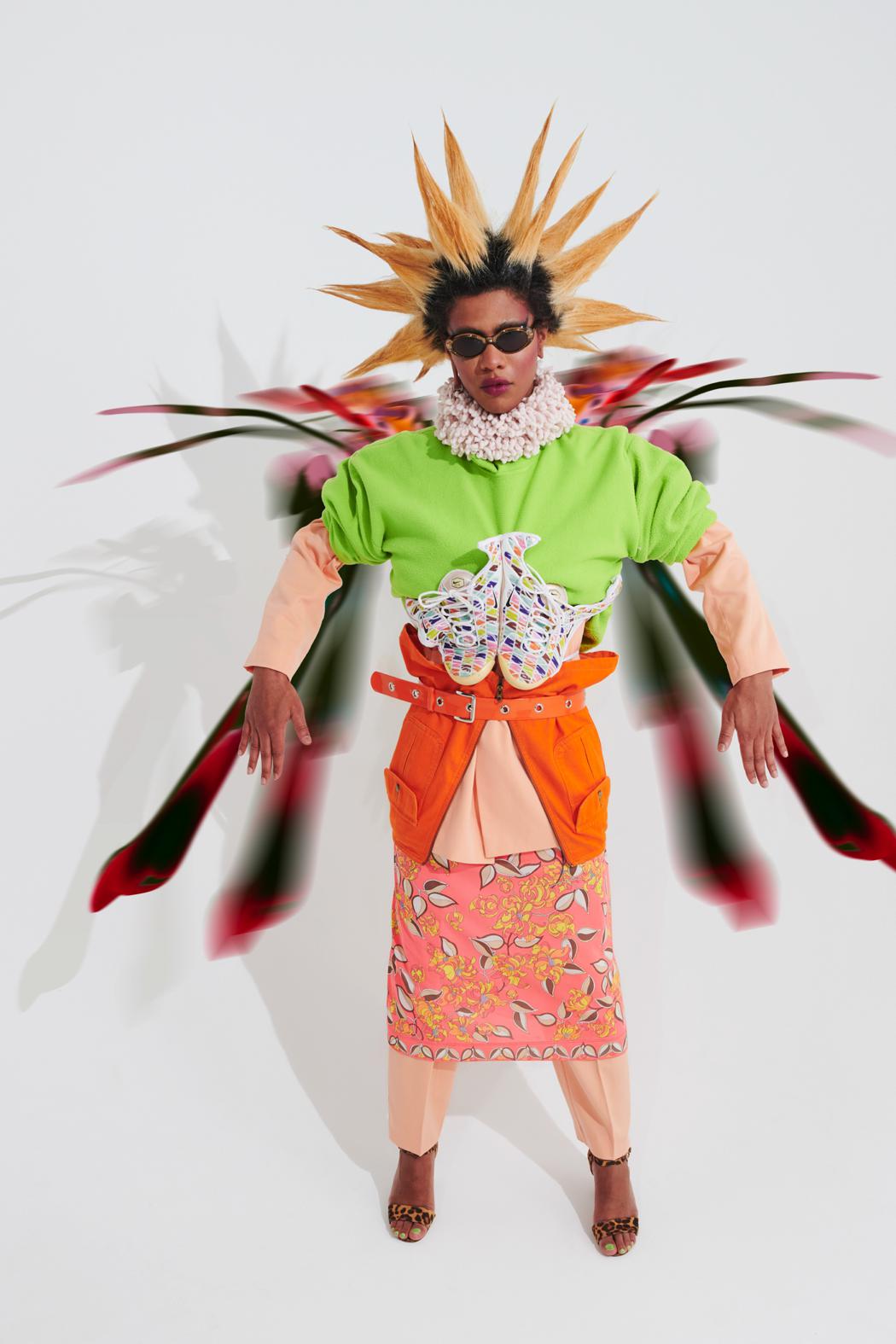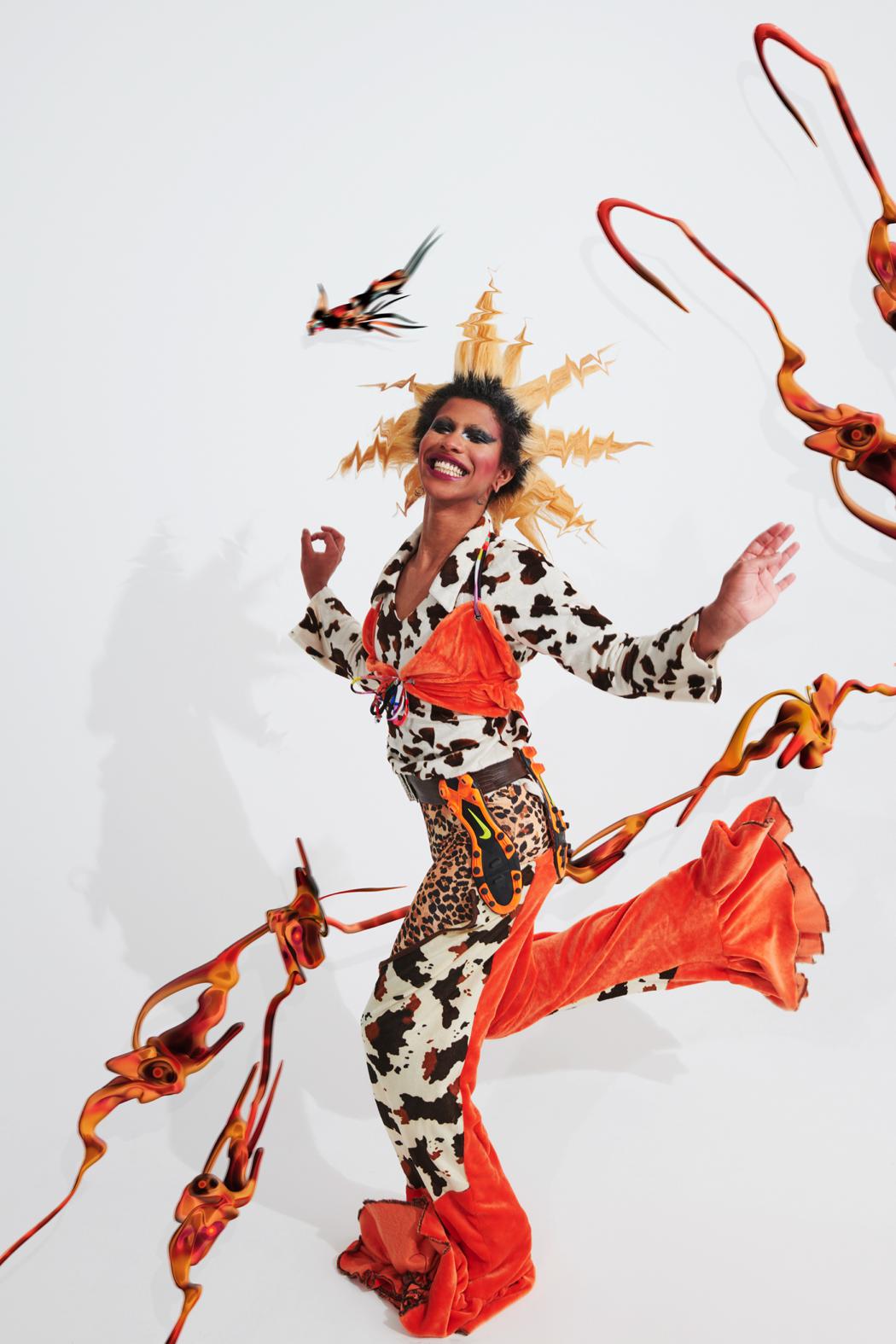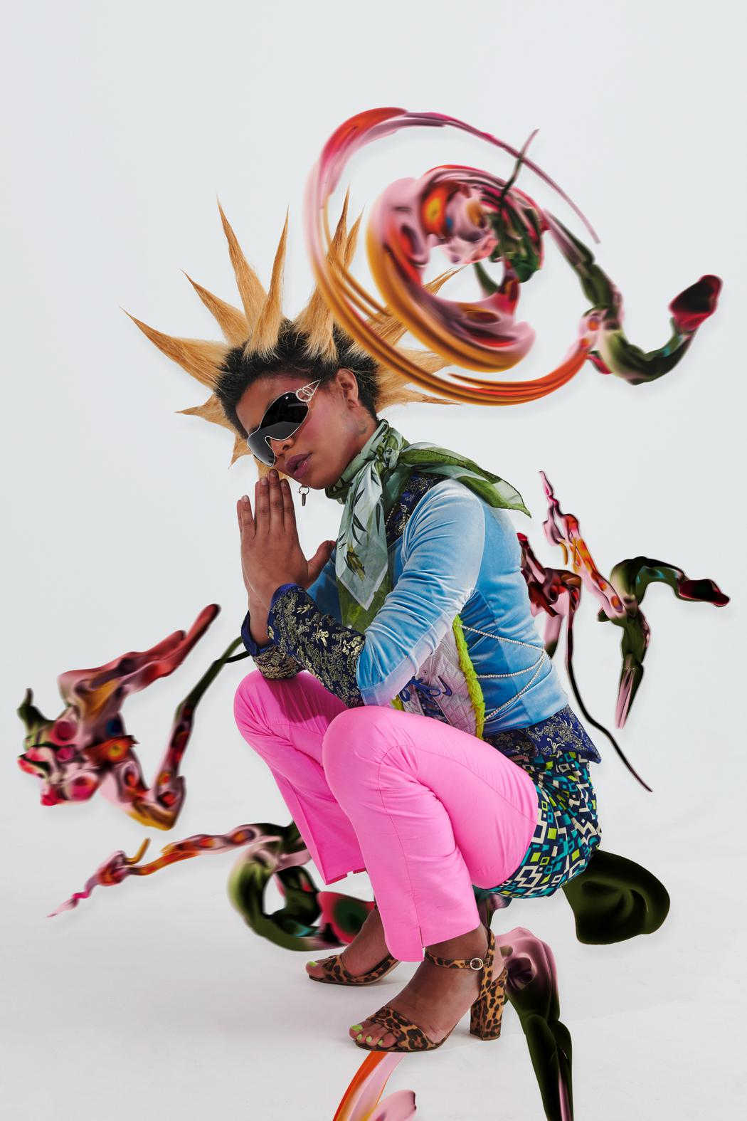 “spæc2μ” is a collaboration between the photographer Ojima, the fashion designer All Amin, the makeup artist Jean Michel, the model Slim Soledad, and 3D artist Gabriel Massan. The idea behind this project was to allow each professional to include their own aesthetic perspective in order to establish a horizontal and spontaneous workflow that would allow a patchwork to unfold all their individual choices. A fun experiment between artists without explicit intentions other than to create and explore.