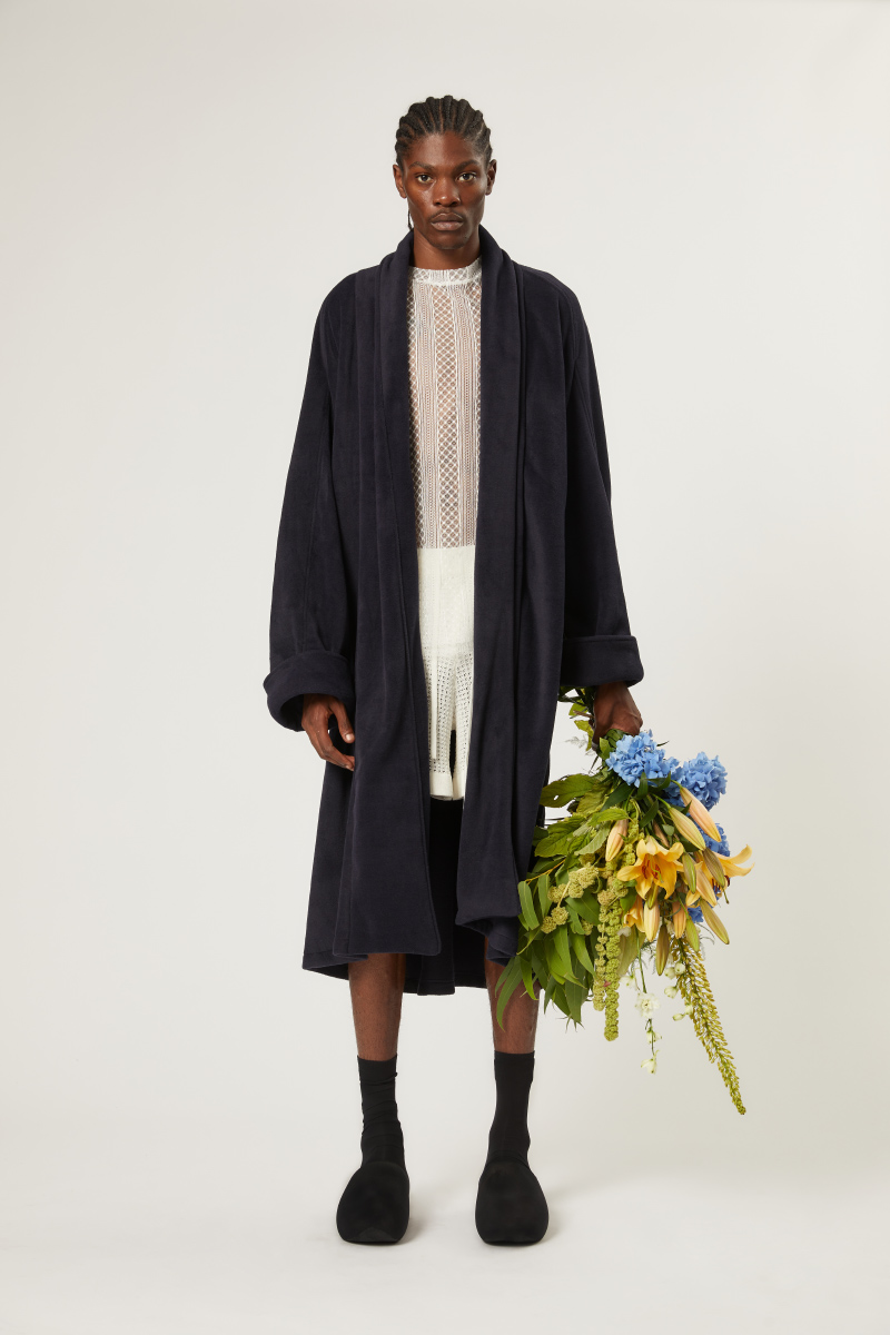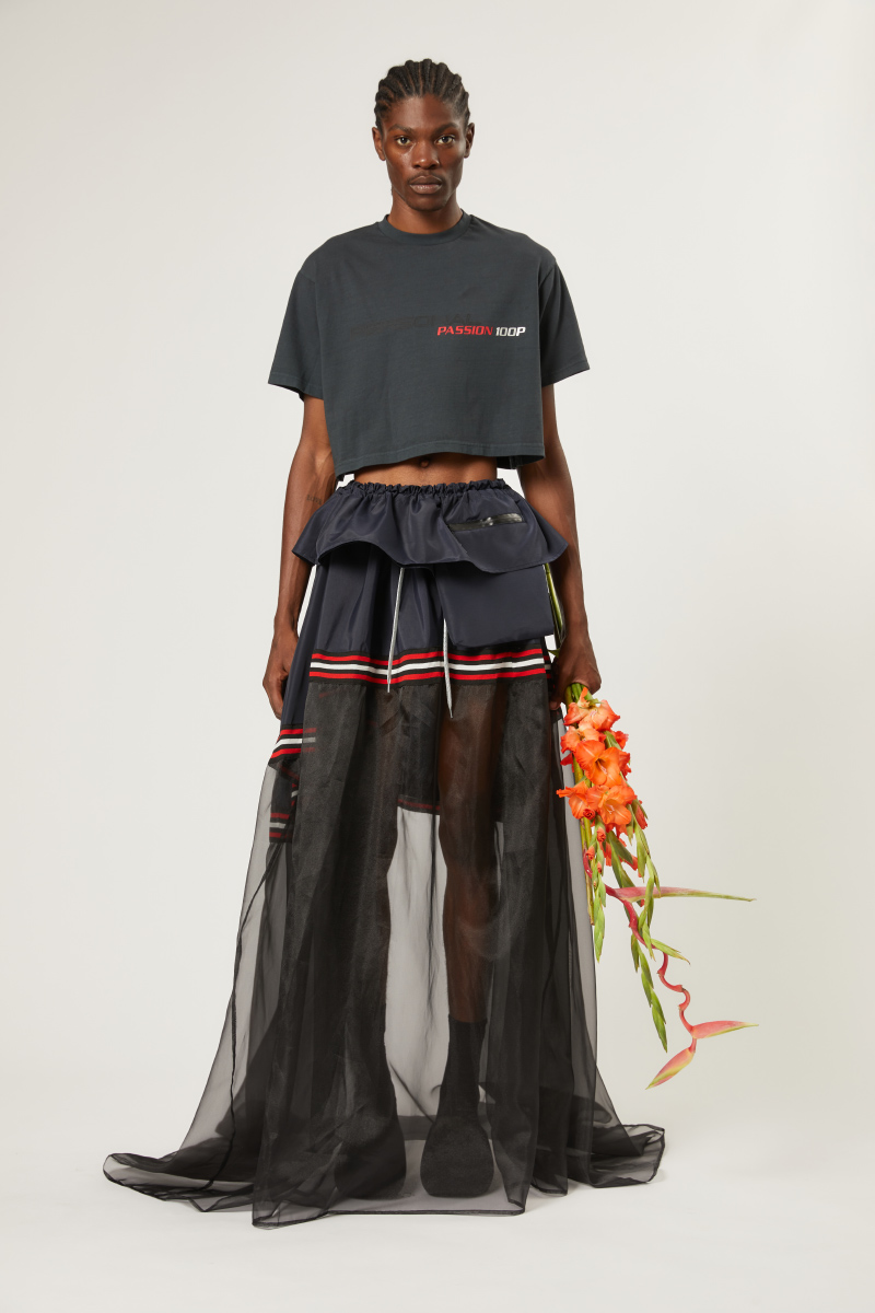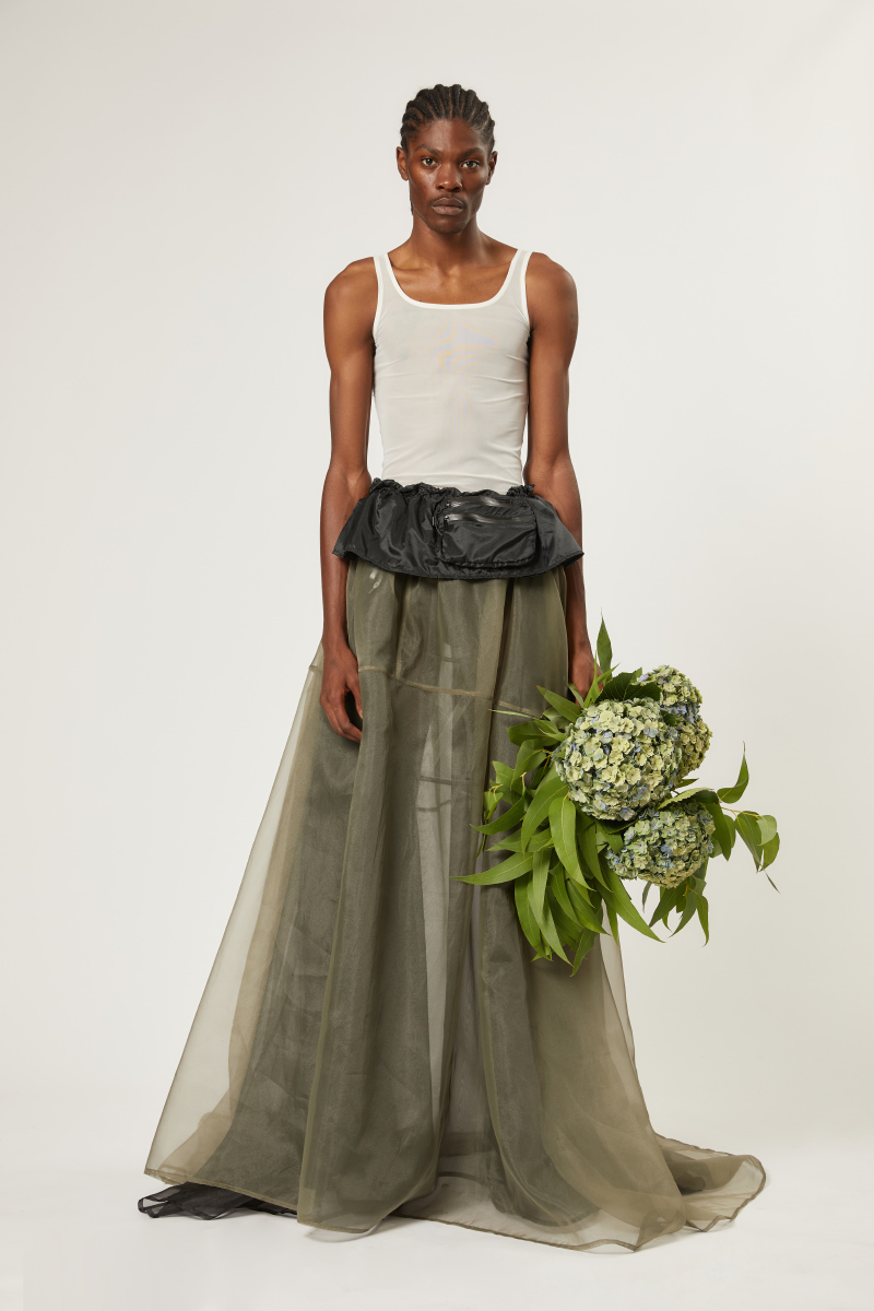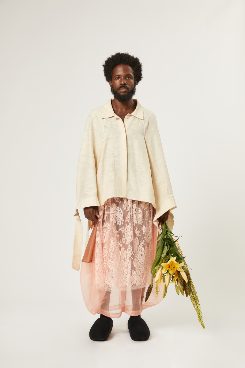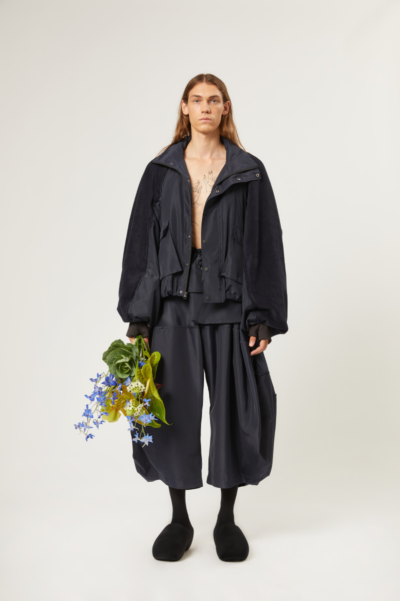 Big skirts, layered with aprons and paired with wooden glogs. The collection reflects on the ambivalence of balancing the fashion slack wire between timelessness and contemporarily and pointing forward to more open landscapes. Unity is key. There is no conclusion, no rules, but rather an openness towards combinations, materials and gender approaches. STAMM is merging streetwear and couture.