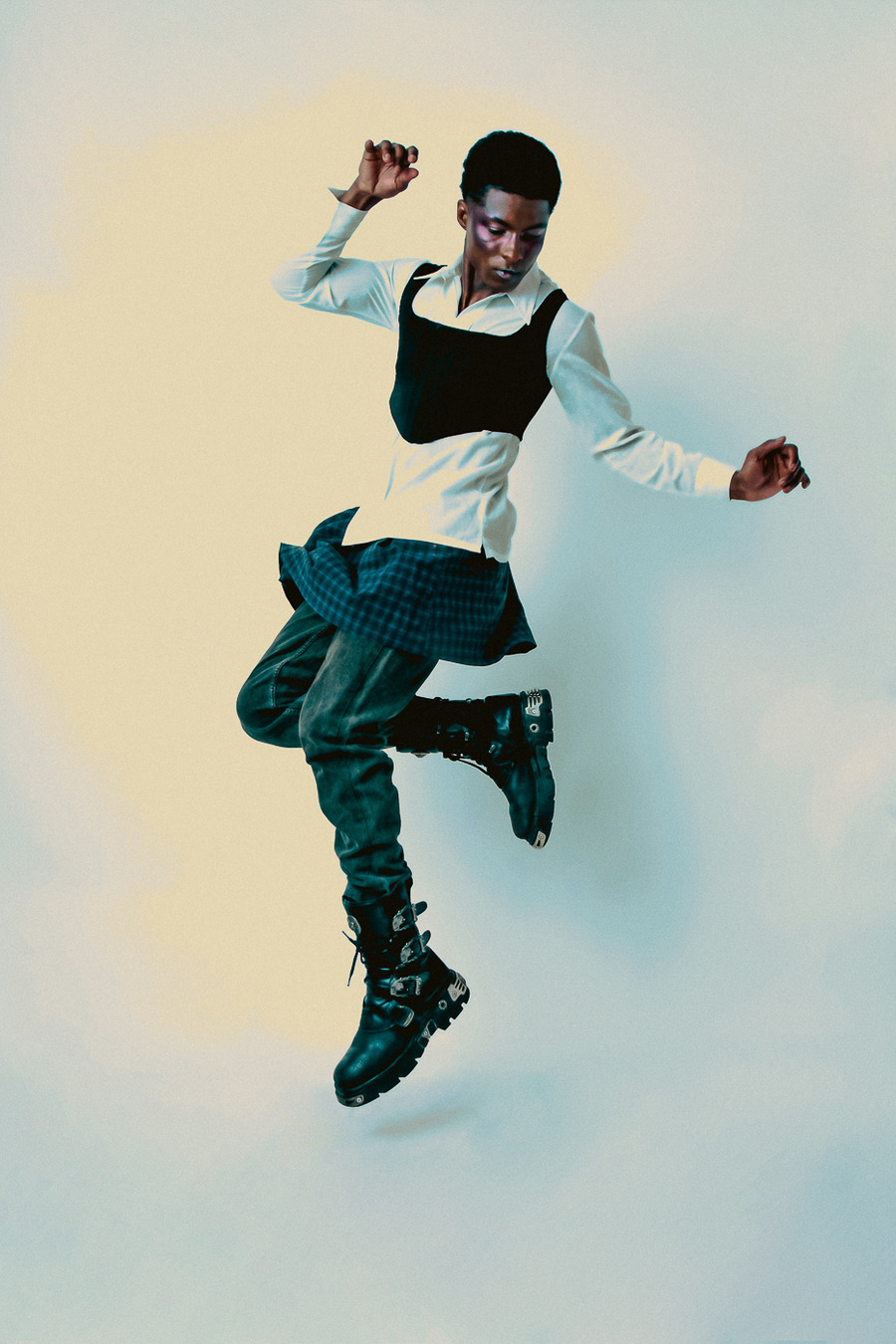 At the beginning of the editorial, we present the beginning of the search for ascension: sexy and determined; in the middle of the editorial, we present daring; and at the end, we present resistance. Resistance can be interpreted through the final makeup: that even in the face of the beatings we take in life if we love what we do, we will continue to do what we love.”