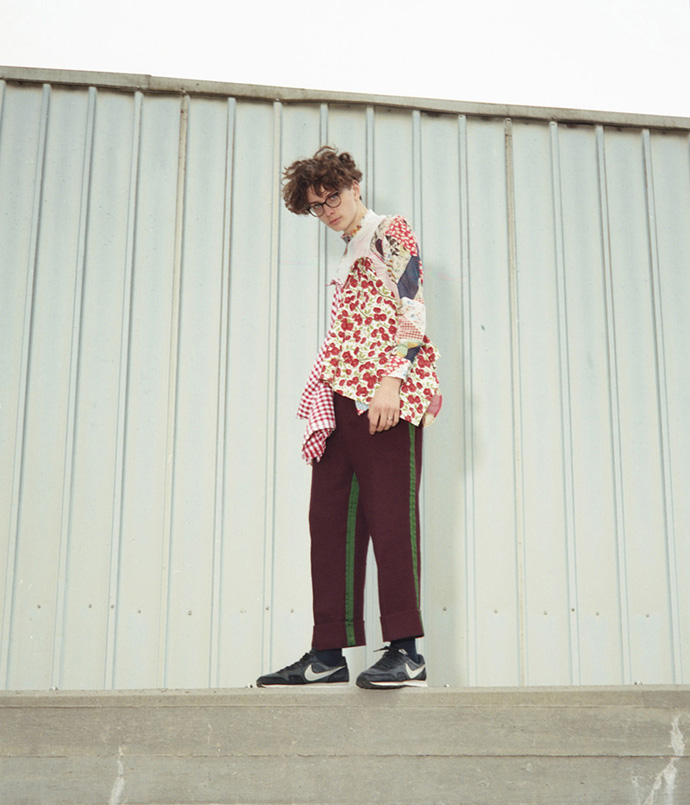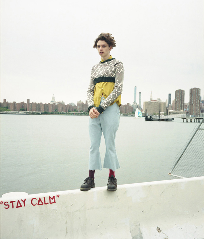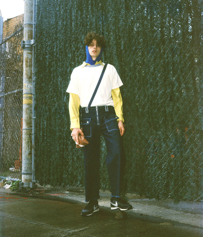 A KALTBLUT exclusive menswear editorial. Photography by Charlie Hawks. Model is Dionyssios signed at Claude Model Management. Styling by Raya Sacco using fashion by Olivia Mains, Bode, Moose, Nike, Doc Marten, KidSuper, William Ryan Stautberg, Mila Sullivan, Ruojing Wang, Oliver Peoples and Seokwoon Yoon.