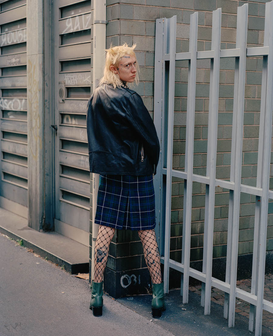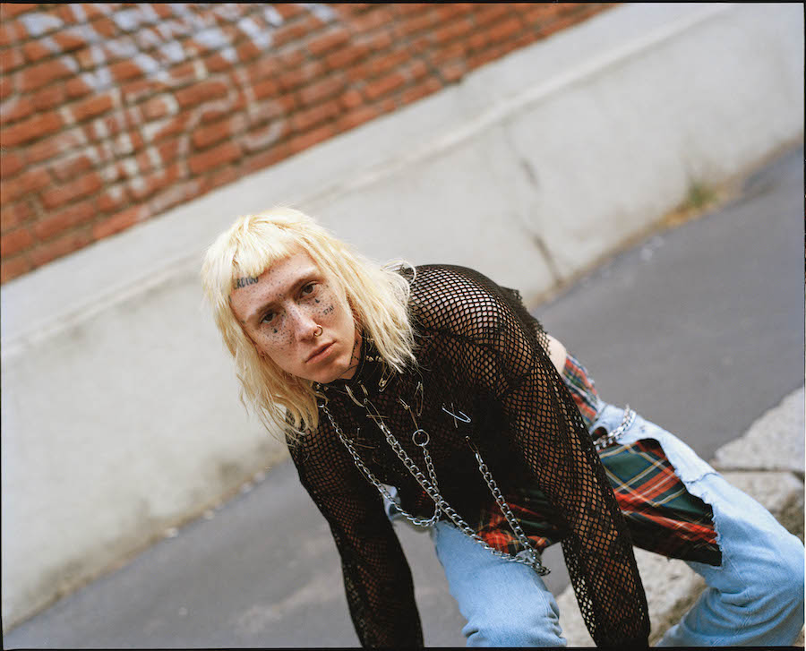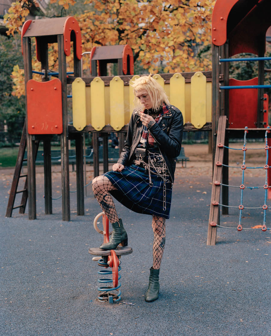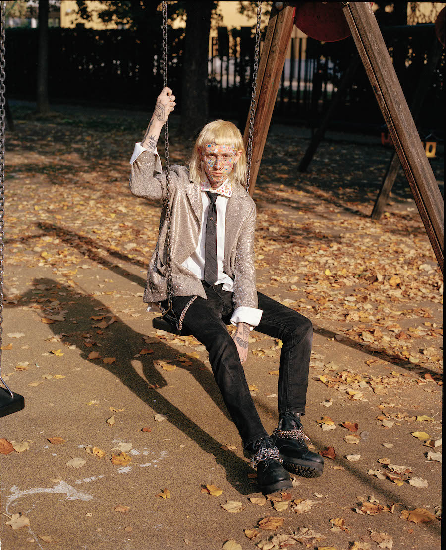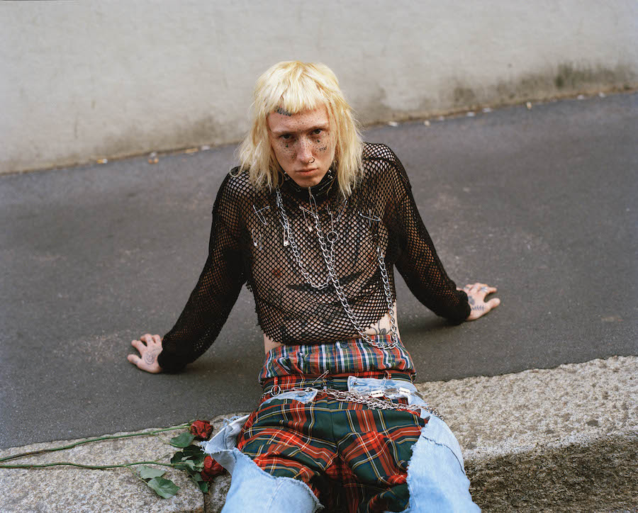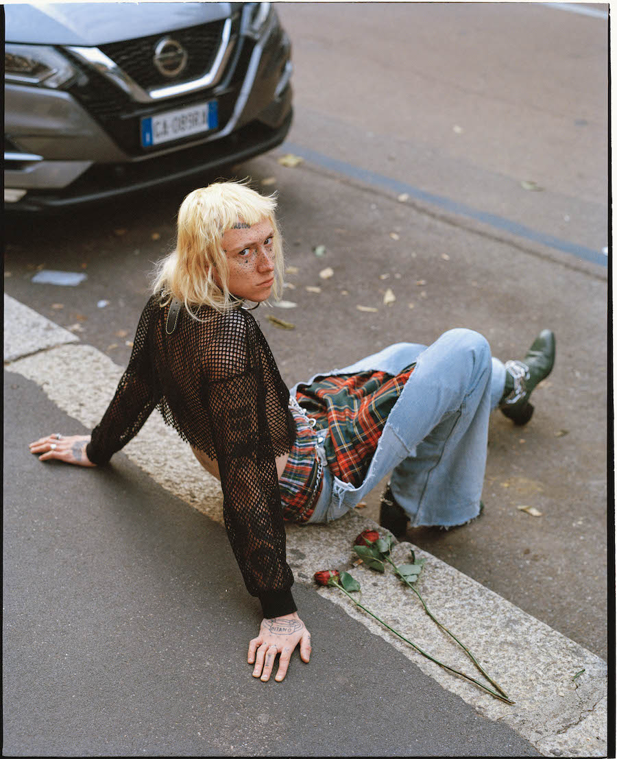 A KALTBLUT exclusive. Photography by Marco Donazzan. Model is Manfred Prevert Vannucci signed at Monster MGMT. Styling by Carolina Mian. Hair by Agatha Borges. Punk is sitting on the ground on the dirty sidewalk, it is not giving a damn about the judgment of the people walking next to you, watching you curiously or scared. Punk is going back to the neighborhood playground and smoking a cigarette while the kids play soccer in the distance. Stay everywhere how you want.