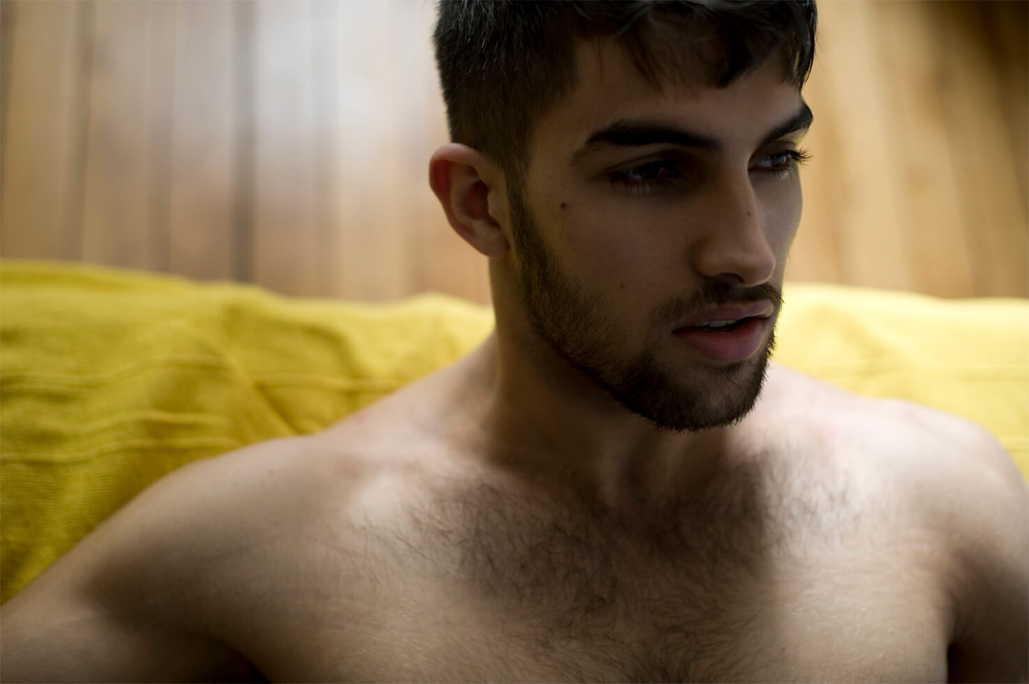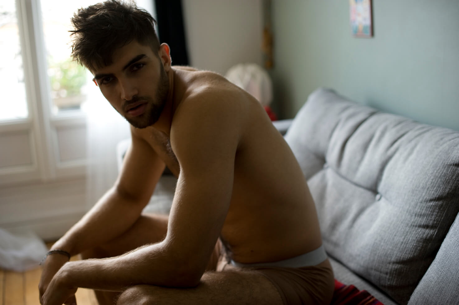 A KALTBLUT exclusive male model feature. Photography by Nicolas Aristidou. Model is Helmy signed at Blakemen Paris. Nicolas Aristidou is a French & Greek photographer based in Paris. Son of an artist, he has been intimately related to image from an early age through painting and photography. Nicolas’ work and aesthetic tend to be cinematographic. Fashion is a way for him to create and narrate stories, modern fairy tales. For this story, he wanted to present with simplicity the world’s current motto: Staying home.