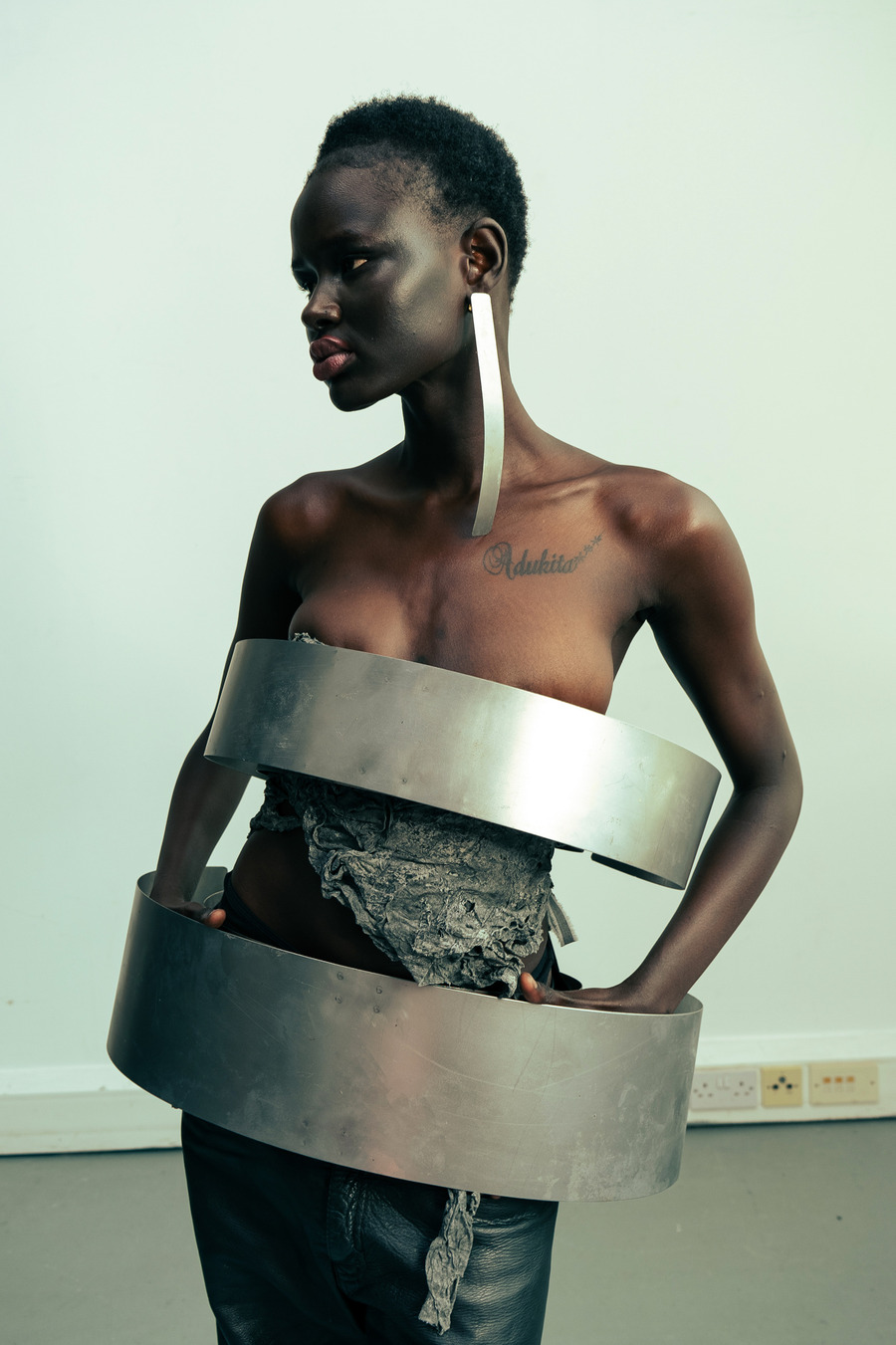 A KALTBLUT exclusive by Abi Wood, a recent fashion design graduate and artistic director from Southeast London. The editorial brings together steel accessories made by Abi and organic textures designed and made by graduate designer Louise Webber. Photography by Moja. Videography by Hanna Fransson. The models are Adukita and Chaewon Park. Makeup by Kanako.