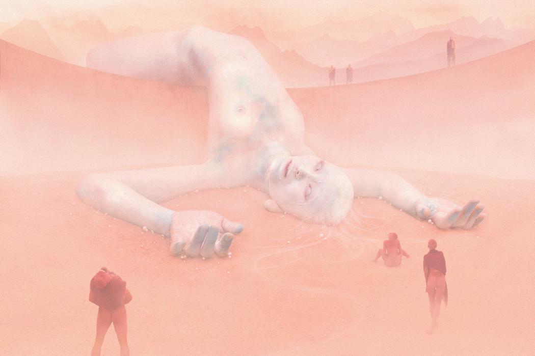 The series looks at the corrupting and debilitating effect that the transitory, selfish desires of the devoted have upon the subjects themselves; at first glance, the scenes are serene, suffused in sensual peach and crimson hues, but on closer inspection, we start to notice that the gods are deteriorating. Their hair is thinning, their red-rimmed eyes are bagged and empty. The euphoric expressions of the worshippers almost look carved onto their faces – empty beneath the mask. Their actions are violations, and they take a heavy toll.