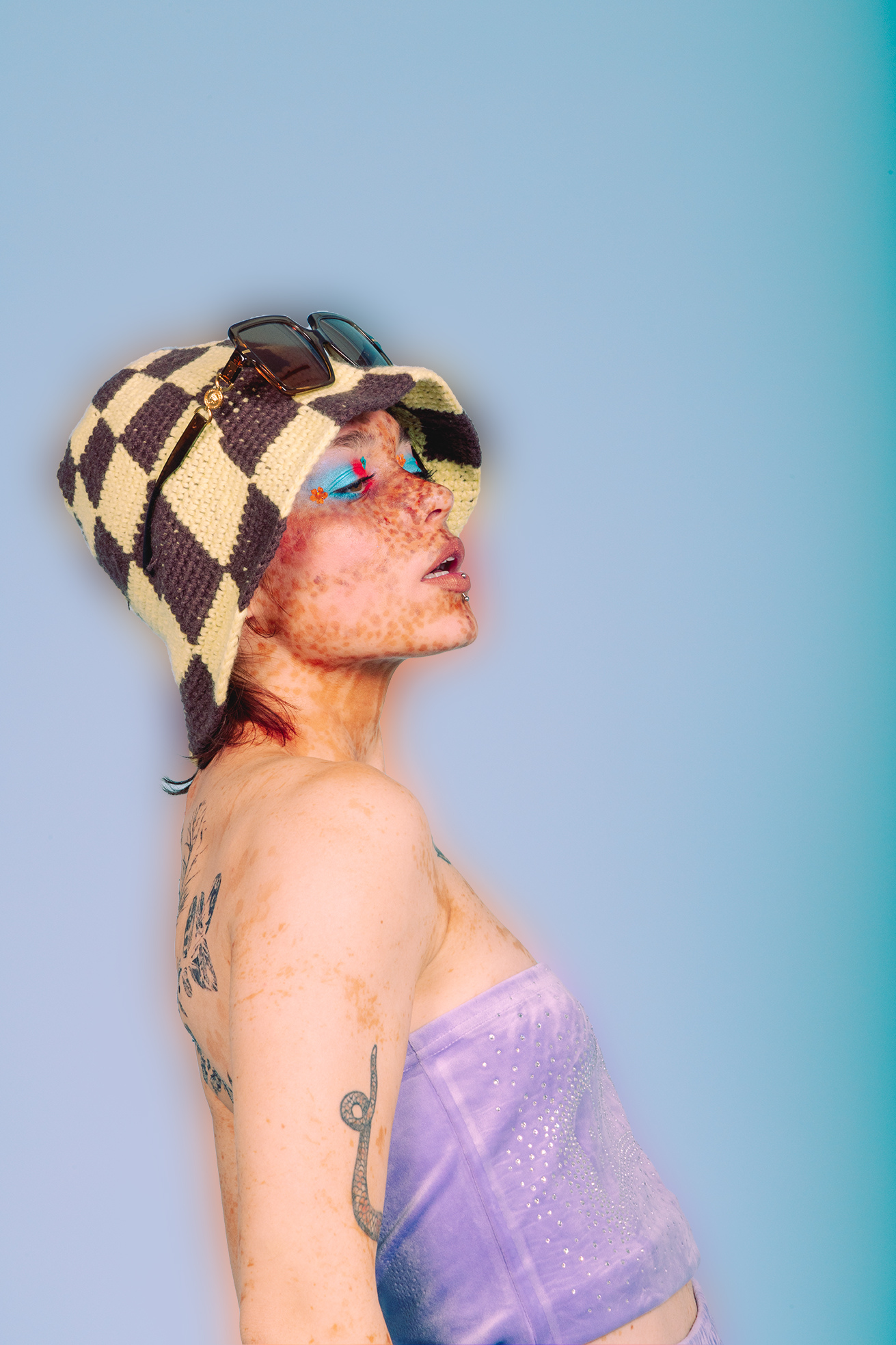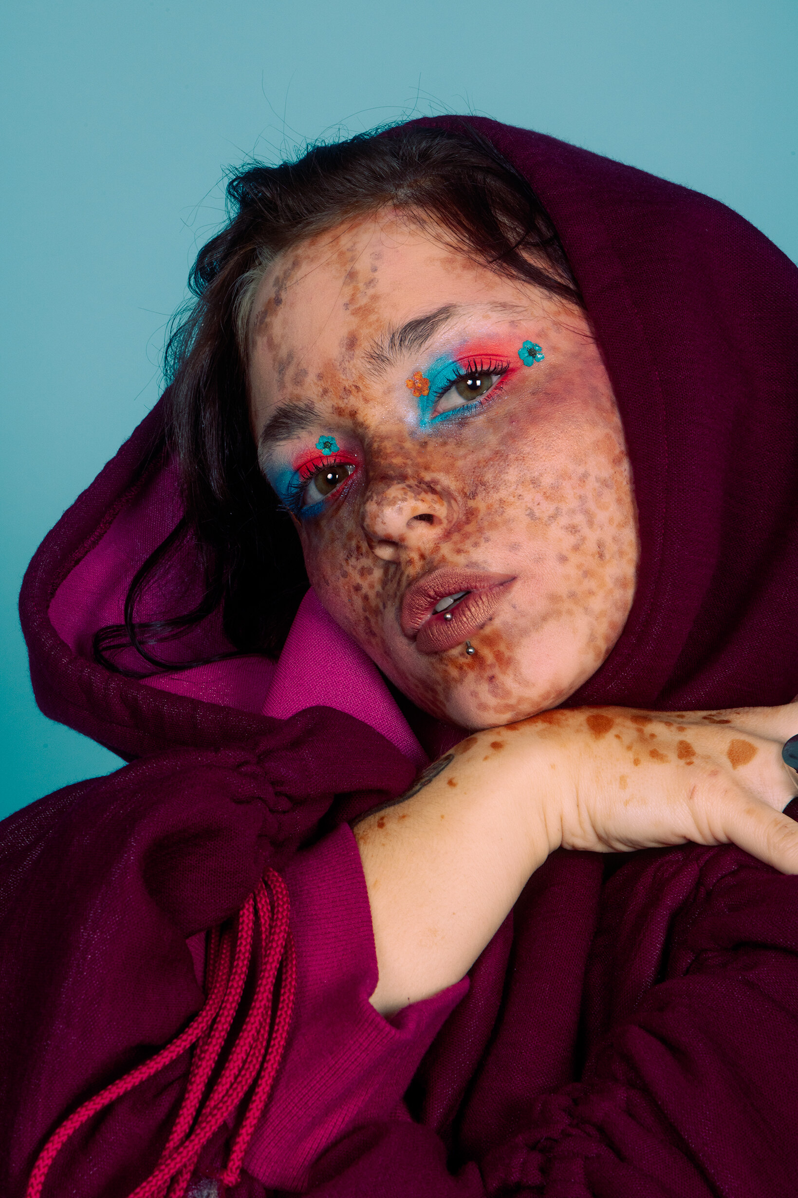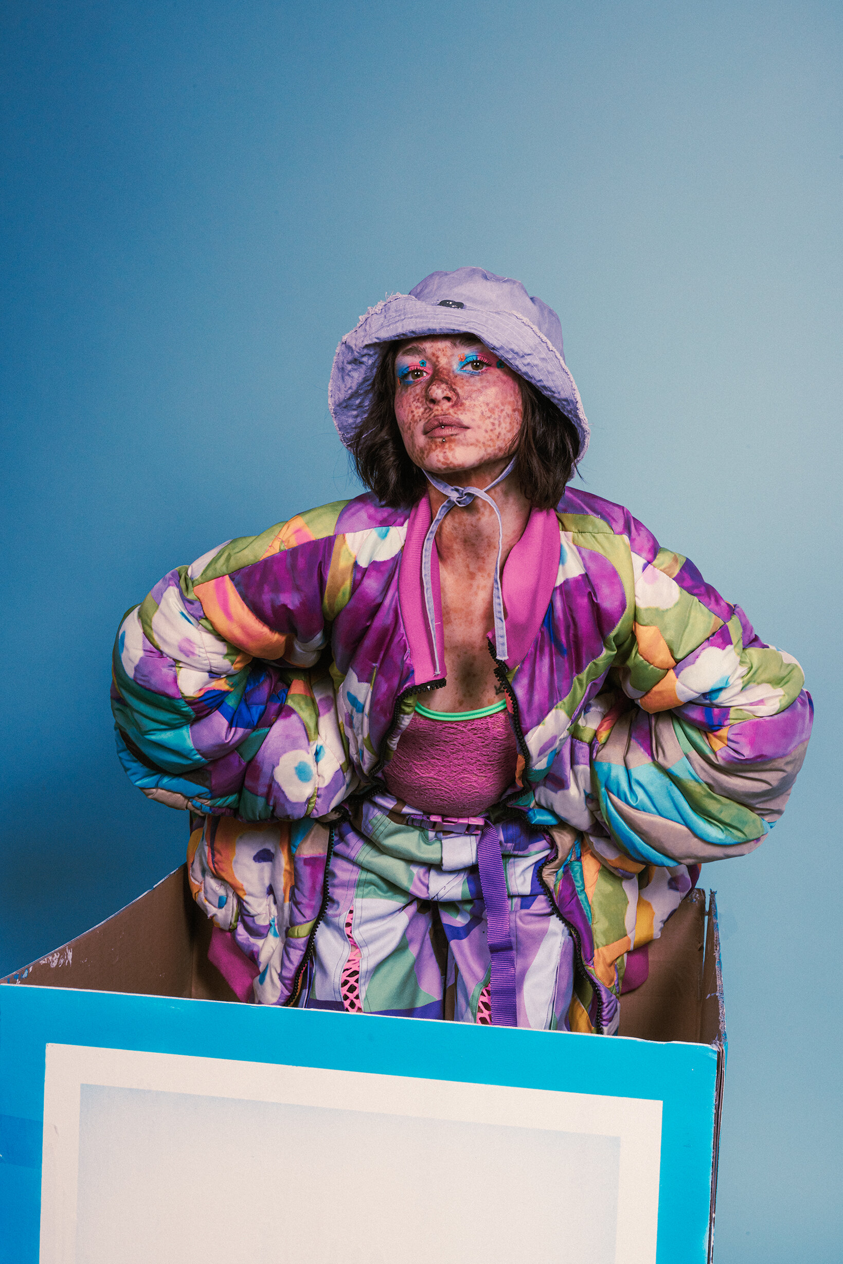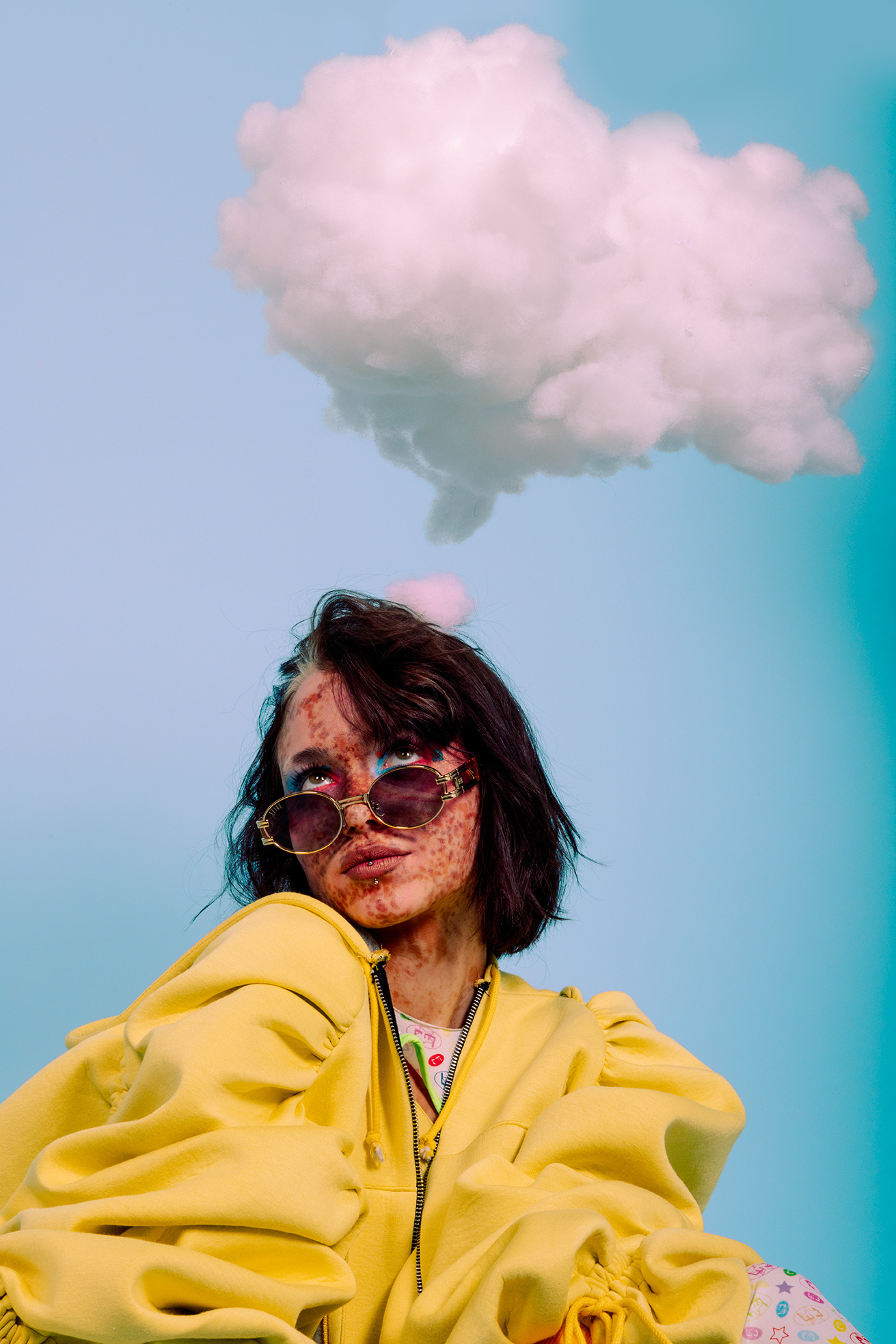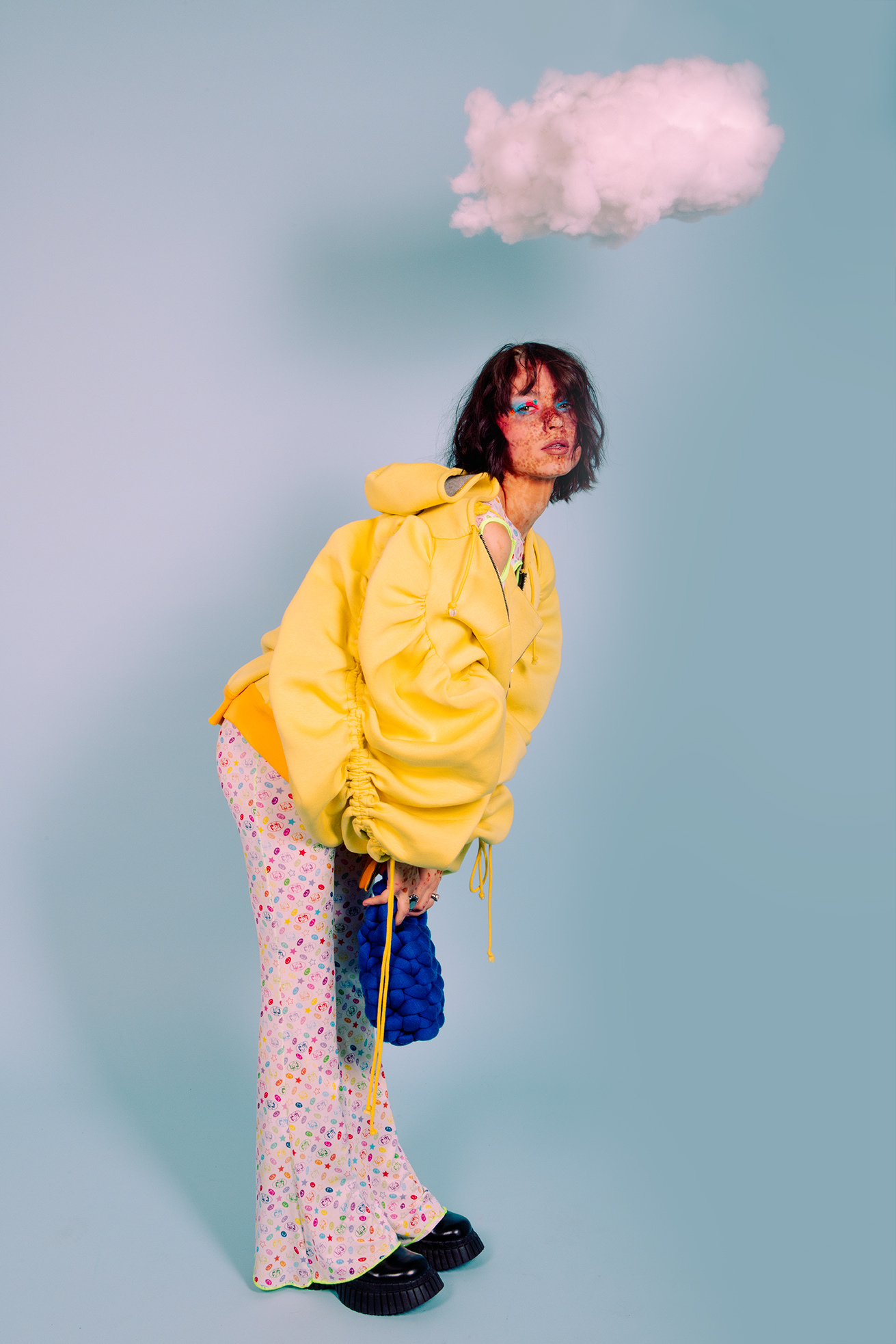 A KALTBLUT exclusive. Photography by Ruben Haccoun. The model is Chloe Szwedek. Styling by Patricia Buliga. Makeup and hair by Cécile Einhorn. “Stuck in a Dream” invites the viewer to dive into a world where the versatility and complexity of human emotions are highlighted through a gallery of characters inspired by childhood dreams, escaped from an imaginary toy box.