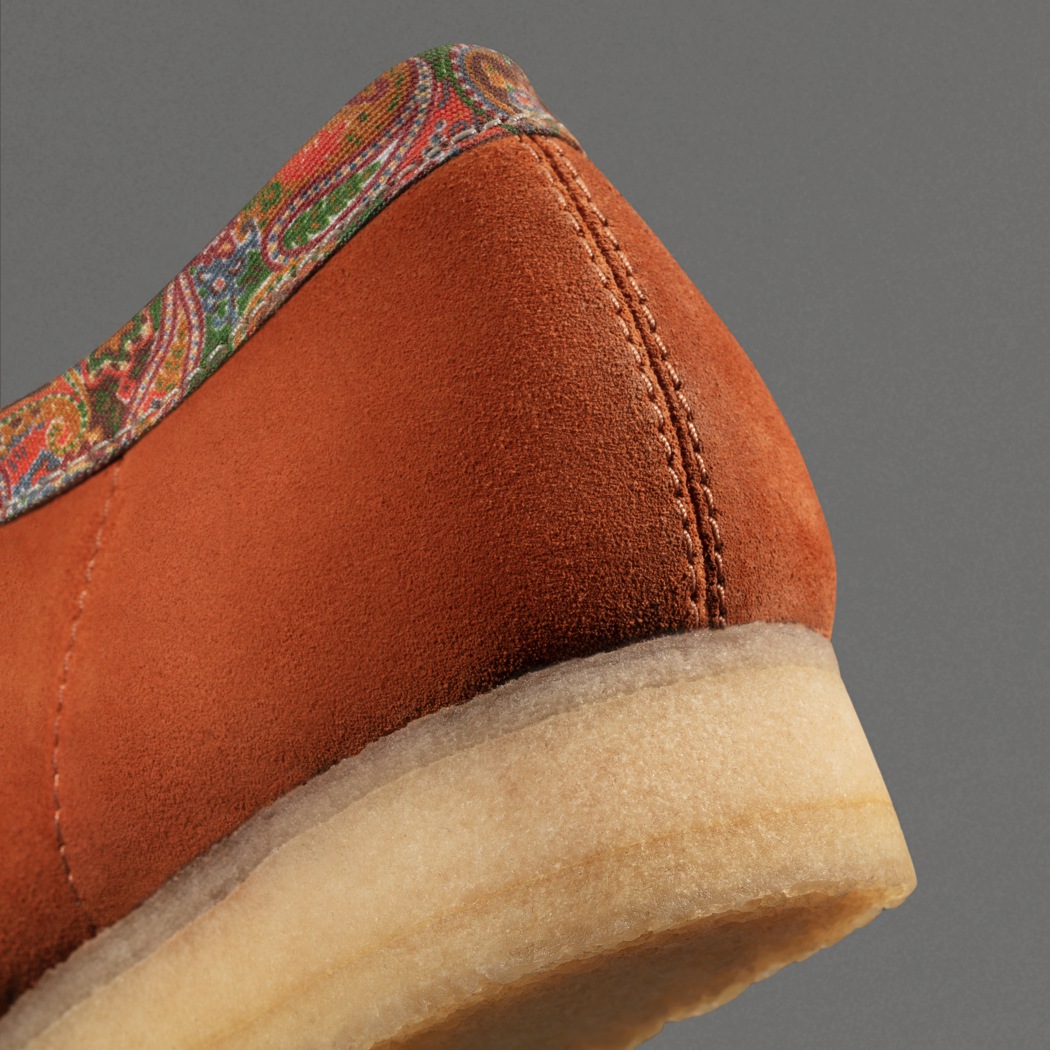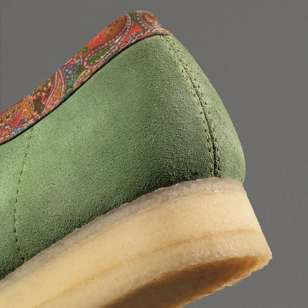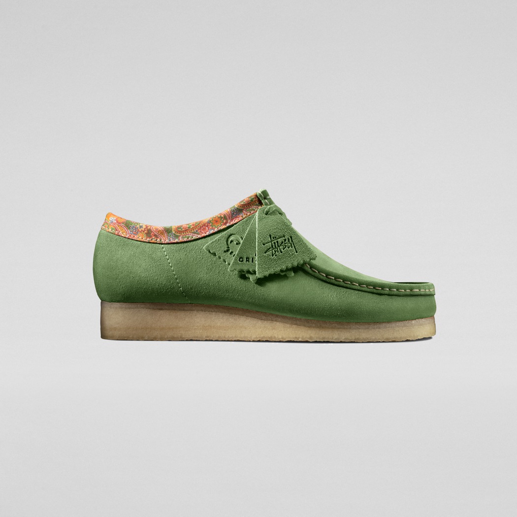Continuing a long-standing partnership, Stüssy and Clarks Originals are back with two new colorways of the iconic Wallabee. Bovine leather in fall-ready shades of sage and rust with a bohemian paisley collar and a classic crepe sole. The ceaselessly re- inventable silhouette rings bells from Kingston to London. @ClarksOriginals @Stussy