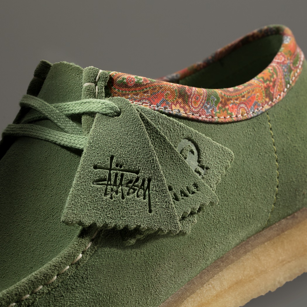 Continuing a long-standing partnership, Stüssy and Clarks Originals are back with two new colorways of the iconic Wallabee. Bovine leather in fall-ready shades of sage and rust with a bohemian paisley collar and a classic crepe sole. The ceaselessly re- inventable silhouette rings bells from Kingston to London. @ClarksOriginals @Stussy