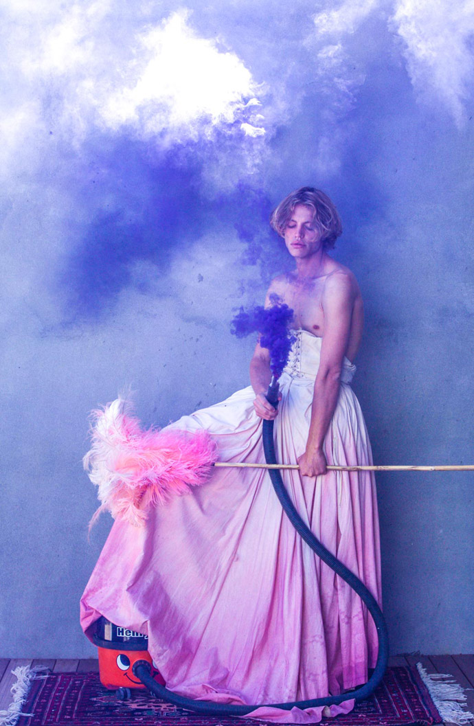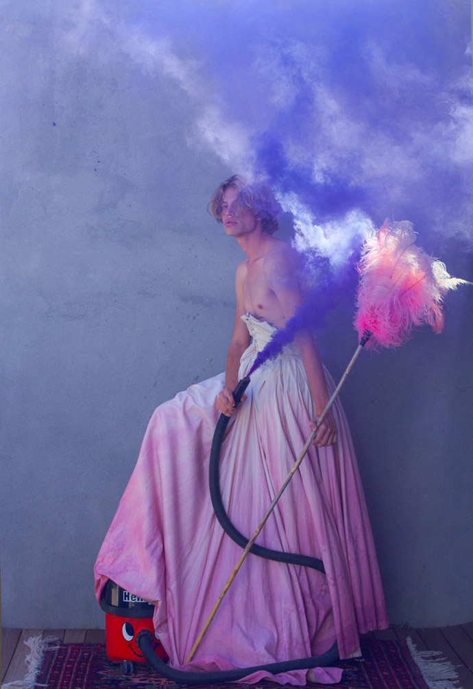A KALTBLUT exclusive male model editorial. Photography by Dawn Frogson. A photographer based in the UK and South Africa. This is a set about how when suburbia tenancies kick in sometimes if you are the stay at home partner, and everyday chores become mundane so pull out a Victorian dress and do the fucking chores! The world is your stage, in everything we do! Model is Brandon Alistair.