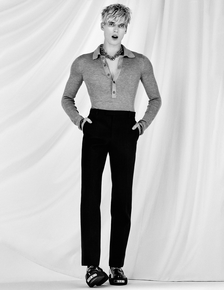A KALTBLUT exclusive. Photography by Boris Edrosa. The model is Karlin Meilgen. Make up by Elle McMahon. Hair by Gordon Chapples. Styling by Jaime Moreno using Burberry, BOY London, Sebago, Julien Macdonald, Mans, Paul Smith, Noel Stewart, Pantherella, Maison Margiela, Homme Plissé Issey Miyake, Gucci, Kaushik Velendra, Jimmy Choo, Denzil Patrick, Brais Albor.