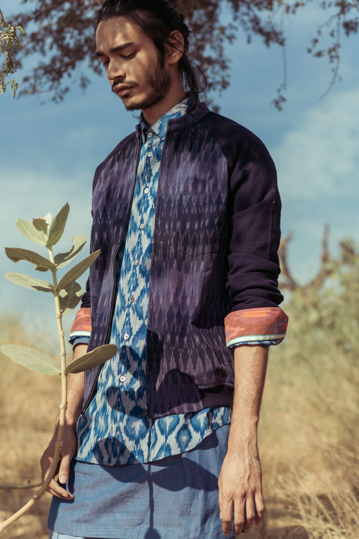 “We are an indo-centric, eco-chic, contemporary menswear brand that combines artisanal techniques and luxurious fabrics in classic silhouettes that are styled with subtle intricate detailing and a hint of quirk. We believe in the ‘Less is More’ philosophy and our old school tailoring & finishing processes lend luxury to every creation. Each garment is crafted from high quality primarily natural materials such as cotton, linen, bamboo, fine muslin (mulmul), silk and wool; which then culminates in a deceivingly simple yet elegant product. We are encouraged by appreciation from our clients, when they gradually discover the subtle nuances and complexities that go into making our products.”