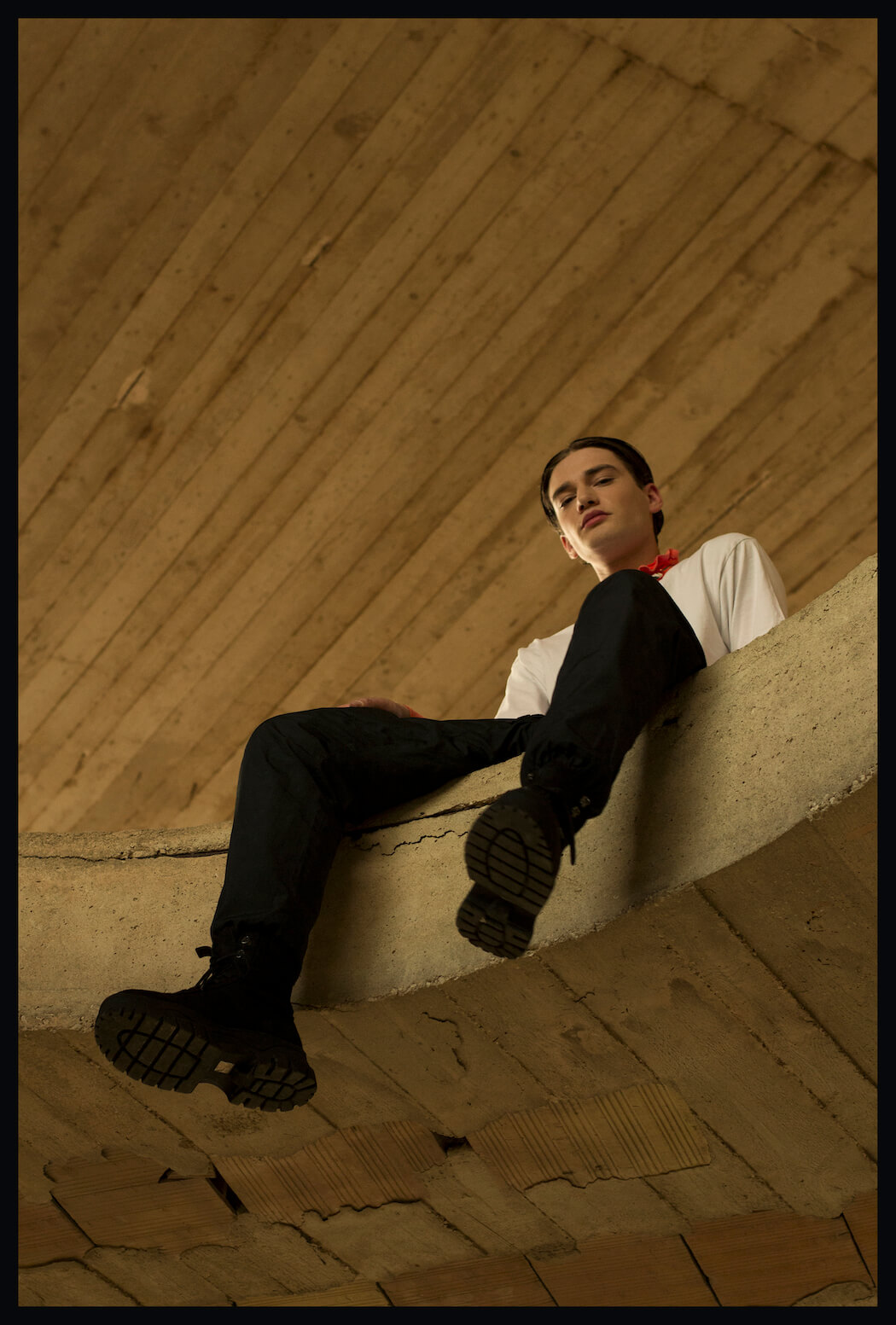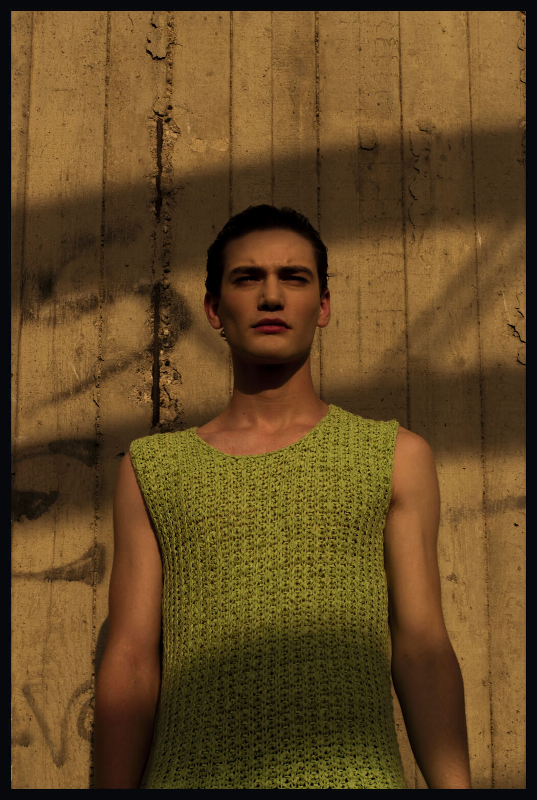 A KALTBLUT exclusive. Photography by Giuseppe Bini. Model is Cosimo Miccolis signed at URBN Models and 3mmodels. Styling by Francesca Schena. Make-up by Luciana Monopoli. Brands are Bottega Veneta, Dries Van Noten, Dsquared2, Marni, Muji, Diadora, Asos, Birkenstock.