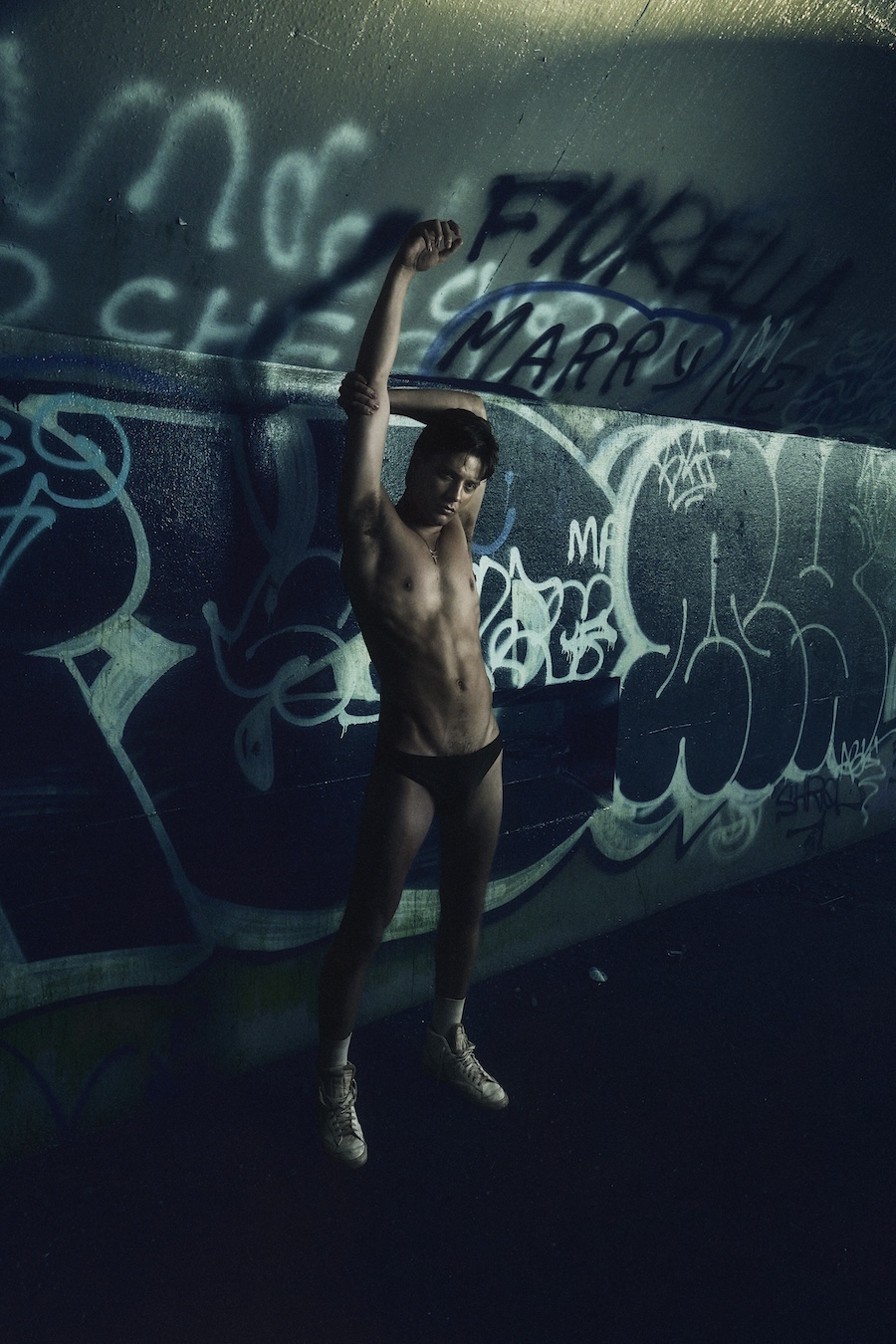 A KALTBLUT exclusive. Photography by Sam Reiss. The model is John T, signed at Click Models. Video by George Monteleone. Styling by Josh Allyn Brewer using Mr Turk, Rufskin, CDLP, Speedo. The photo and video assistant is Pablo Arias.