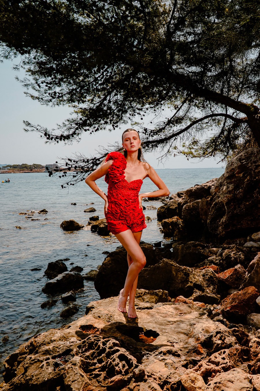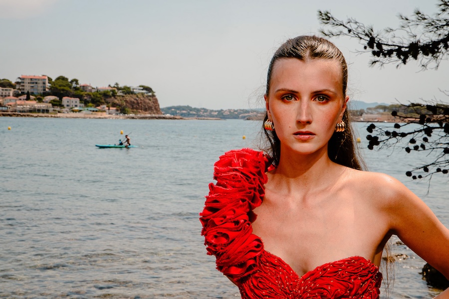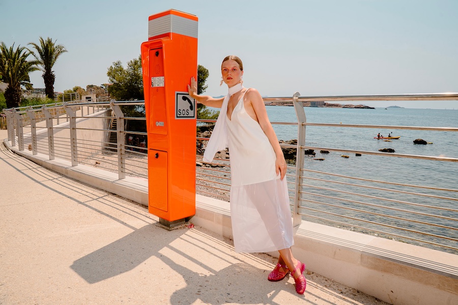 Sarah and Marion were eager to create an editorial in the south of France. Since Marion is originally from Bandol, it made sense to design an editorial centred around Provence and the French Riviera. To do so, they called upon numerous artists from Marseille, from designers to models and other creatives. This is why they collaborated with the Baga Collective, the driving force behind Marseille’s Slow Fashion Week, which brings together more than 80 creators from the south of France, as well as the concept store Silk, which has just opened near the Vieux Port, among others.