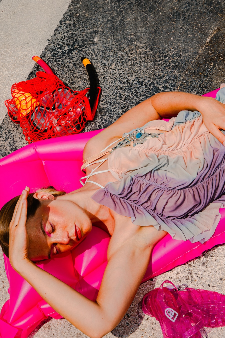 This shoot blends the codes of summer luxury with the spontaneity of the moment. Clothes become accessories of freedom; the scenes shift between sun-kissed sensuality and playful intimacy. Each image captures a burst of light, a flash of laughter, a breath of summer.
