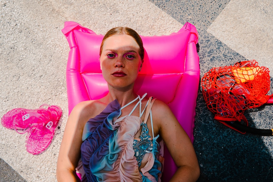 Brands used are: Silk, Baga Collectif, Marj label, Jade Tekhil, Purr swimwear, Loe Studio, Leia Vandooren, Zaya, Julia Ruiz, Gaggoh, Elisa Minamba, Ewa Jamrozek, Versace, Yves Saint Laurent, Courrèges, and Jacquemus.