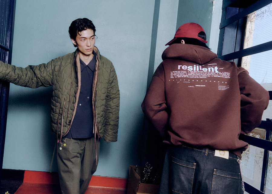 The FW24 collection sees the triumphant return of Sundae School’s signature smokewear line, reinvigorating the traditional Korean hanbok (한복) with contemporary flair. This nod to cultural roots is flanked by sumptuous outerwear, featuring audacious puffers and fleeces, and a reimagined wardrobe of everyday essentials including sweatshirts and tees. Each piece resounds with the season’s emblematic refrain: “Alone we are silent, but together we are resilient,” saluting the fortitude and unity of the Asian American narrative.