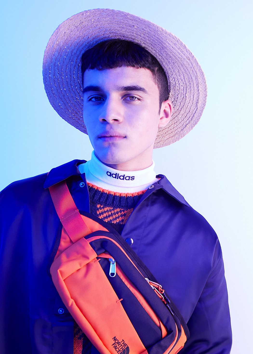 A KALTBLUT exclusive menswear editorial. Model is Juan Ocorrell. Photography by Stephanie Ross. Styling by Rowan Hall using fashion by CAT, Cheap Monday, The North Face, Puma, Dickies, Weekday, Adidas and others. Grooming by Priscila Matano.