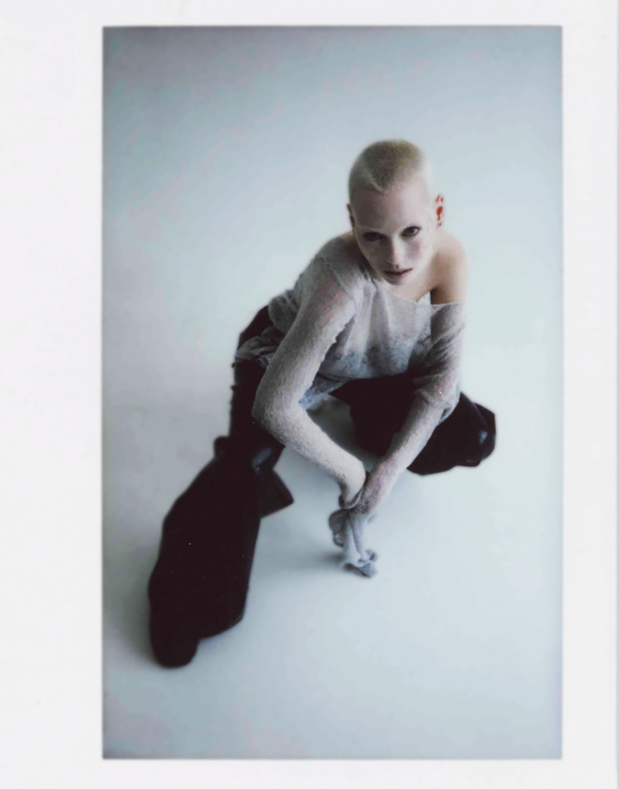 A KALTBLUT exclusive. Art Direction by Dominik Leingartner. Producer is Gülden Sarac. Models are is Helene Harnisch and Eric Mai Pototschnik. Styling by Sandra Cienkowski. Make up by Eleonore Ising. Brands used are Florian Máthé, SF 1 OG, Noemi Buchert. 3D Artist is Bianca Novák. Superduper is a visual exploration of posthumanist ideas of outsourcing the human ability to think and thus externalising intelligence. Human organisms that turn into shells and, like cocoons, have the sole meaning of preserving an inner unity, a transcendent mind. Raising the question of the future significance of a physical body.