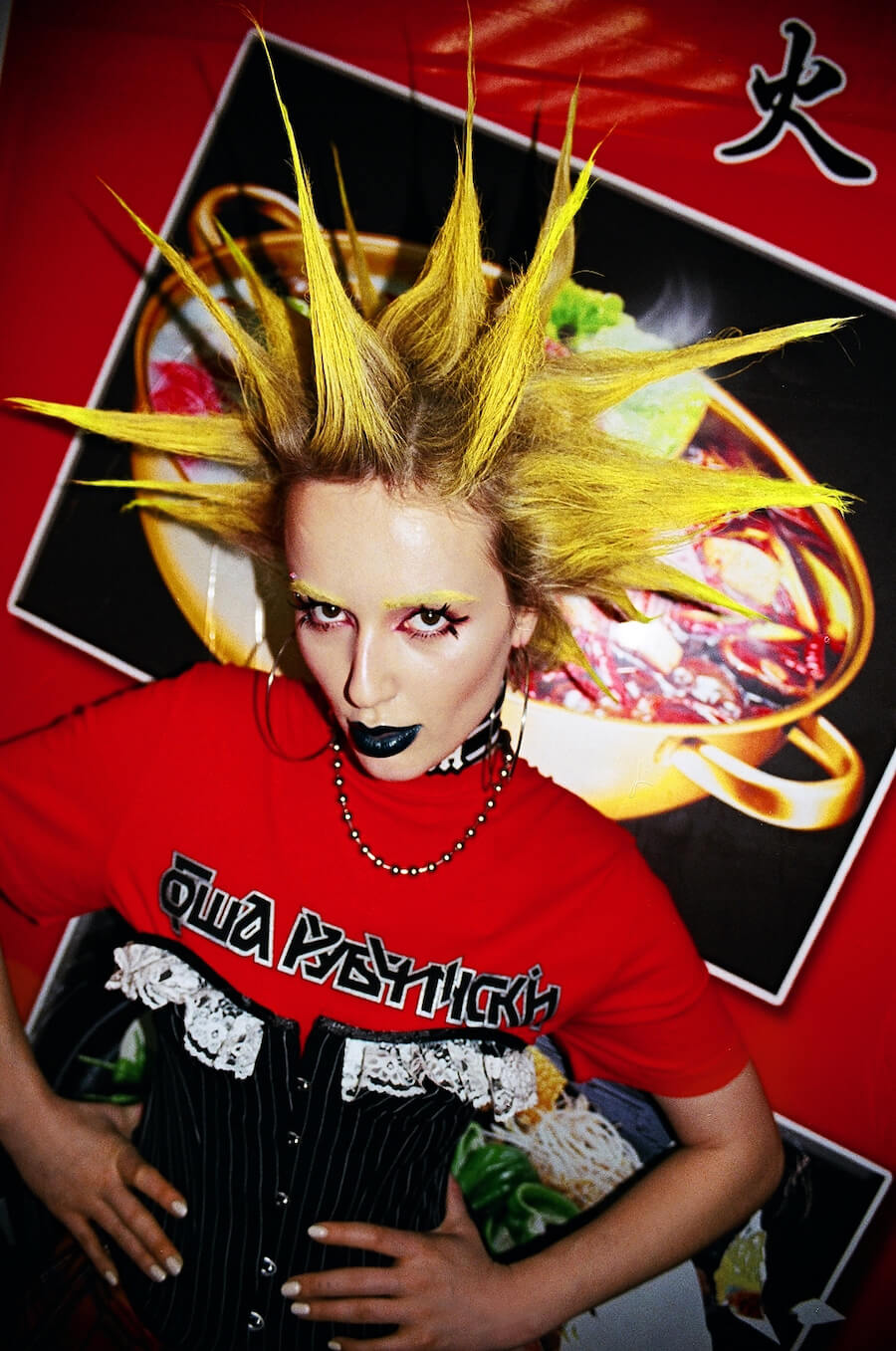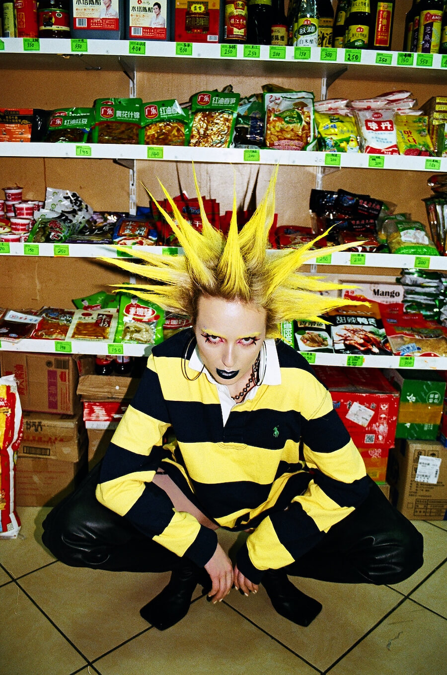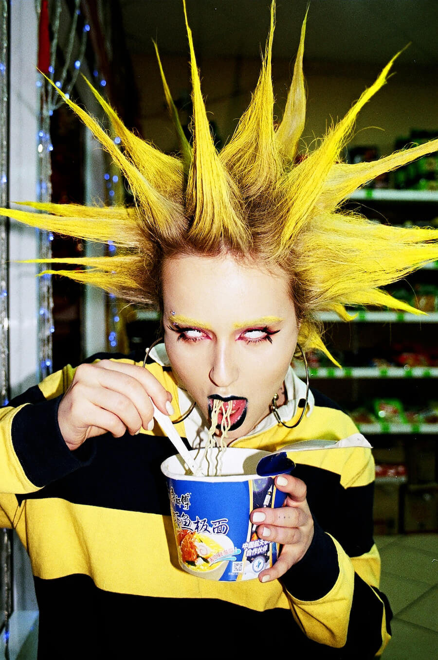 Photographer Marie Lourier captured Salavat Kypere for a KALTBLUT exclusive series. Styled by Salavat Kypere. Make up by Glasha Gurianova. Brands are Balenciaga, Ralph Lauren, Gosha Rubchinskiy, Fenty Puma, Naked Couture, Sintezia, Carolina Lemke x Kim Kardashian, TUC, Tezenis. Hair by Tueva Maria.