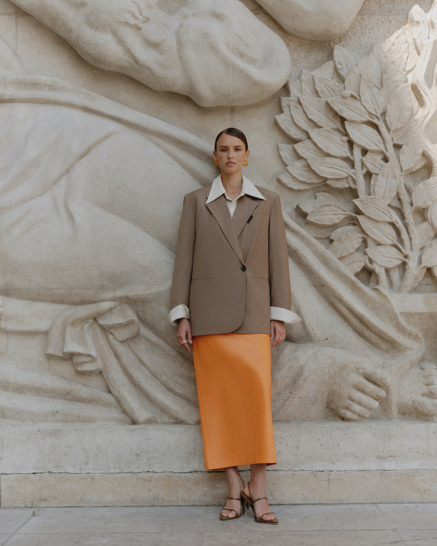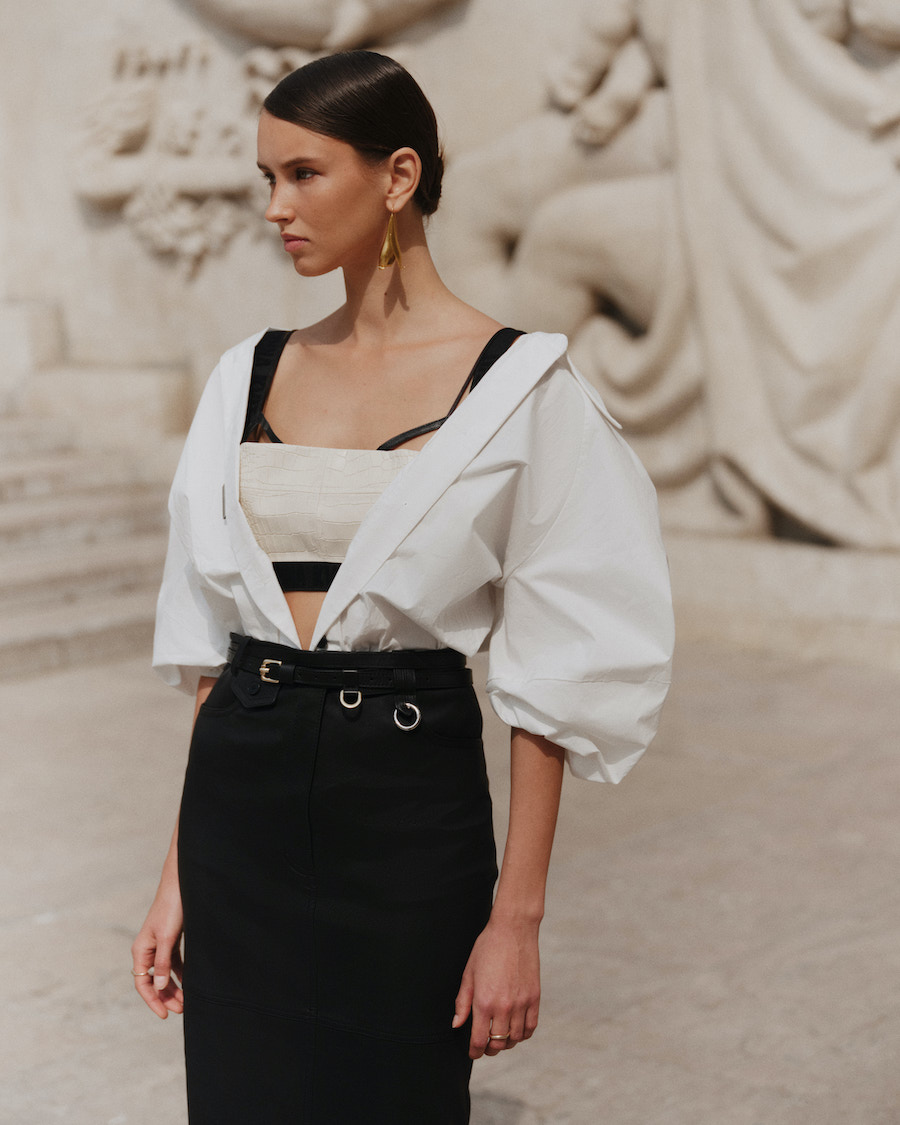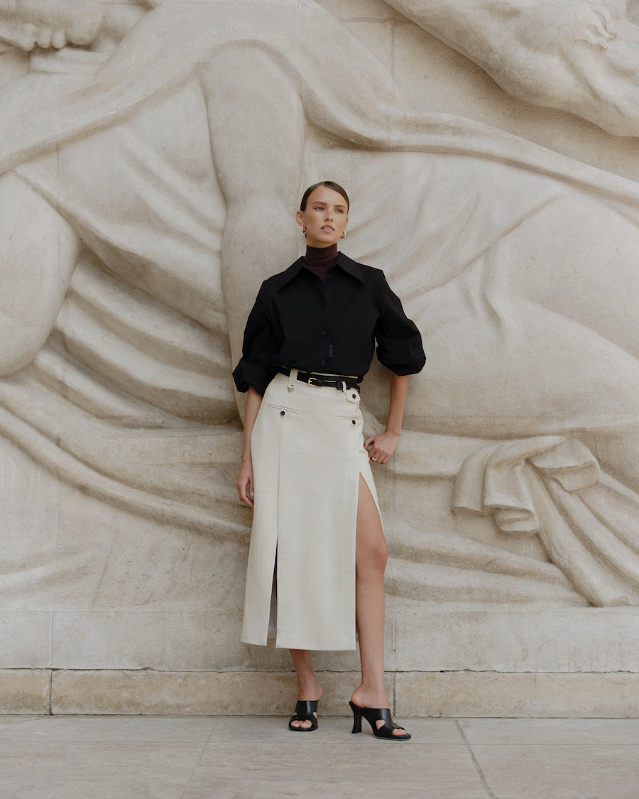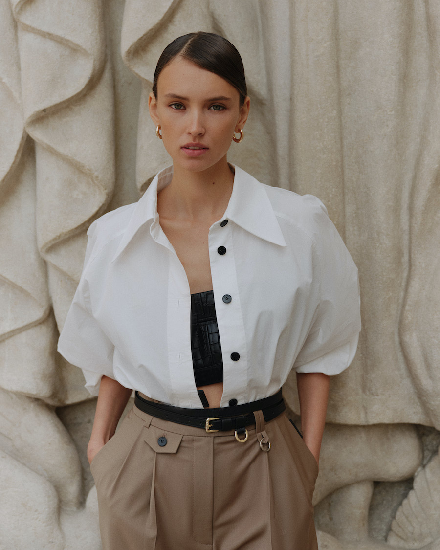 Key items: transformer jackets, tops, shirts with large sleeves, maxi skirts, which in the new season will be the perfect replacement for trousers, iconic minis, versatile leather scarves that can be used as a bandana, tied instead of a top or as an accessory to a bag. Materials: genuine leather, leather with crocodile print. From season to season, the brand makes a conscious bet on genuine leather products, as it believes that environmental friendliness directly depends on the durability and quality of things. Leather is sustainable. That is the most important motto of KATERINA KVIT.