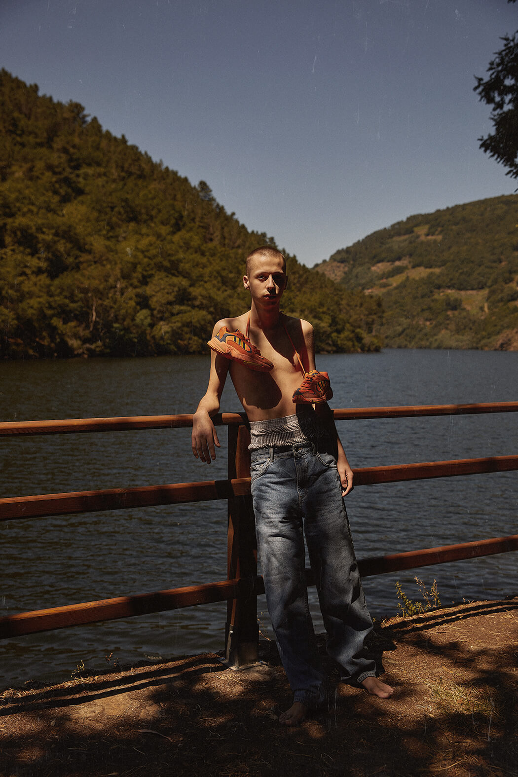 A KALTBLUT exclusive. Photography by Alba F. Sobral. Model is Adrián Conde. Styled by Alicia García. Make up and hair by Paula Grandal. Fashion brands are Name Funky Guerrilla, COS, Amass, adidas, Adolfo Domínguez, Huff, Zara, Weekday, Decor Apparel and Covernat (KR). Digital artwork by João Gonçalves.