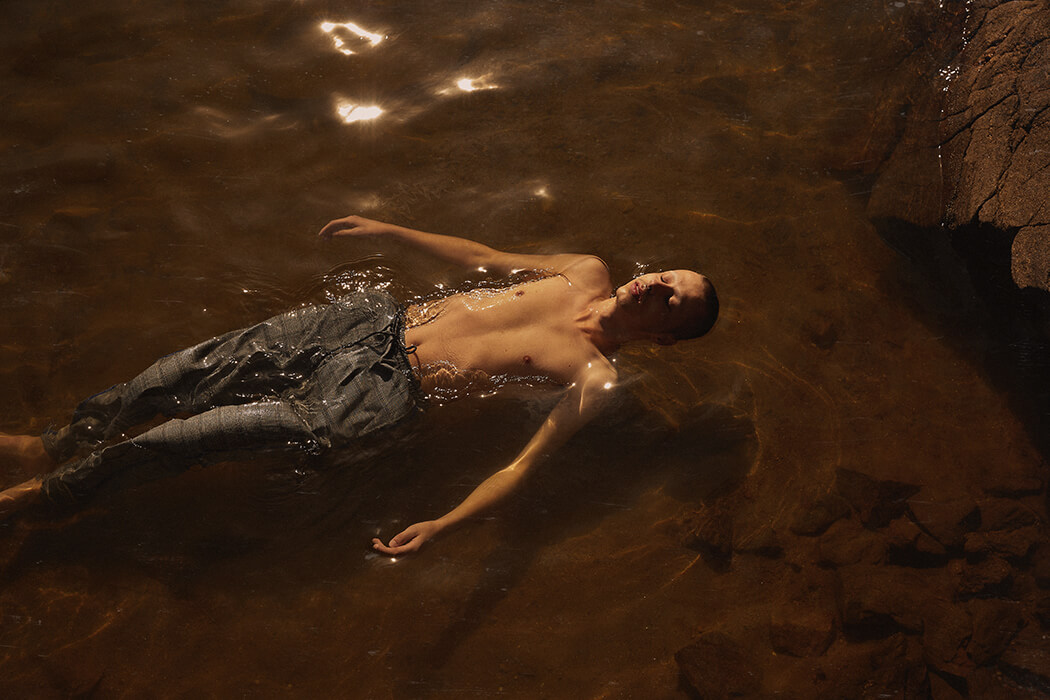 A KALTBLUT exclusive. Photography by Alba F. Sobral. Model is Adrián Conde. Styled by Alicia García. Make up and hair by Paula Grandal. Fashion brands are Name Funky Guerrilla, COS, Amass, adidas, Adolfo Domínguez, Huff, Zara, Weekday, Decor Apparel and Covernat (KR). Digital artwork by João Gonçalves.
