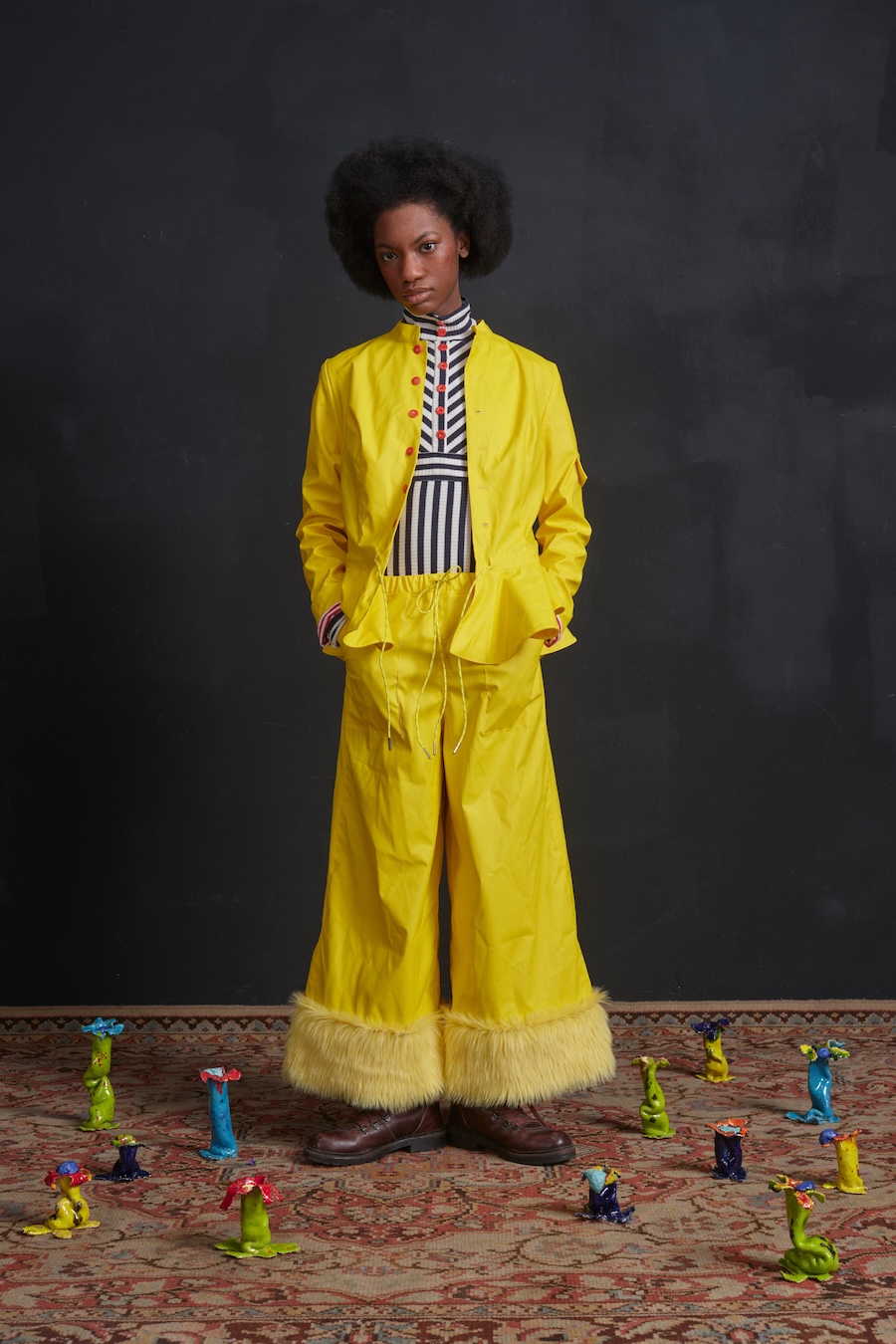 The collection not only embraces themes of transformation, joy, sustainability, and inclusivity, but it also adeptly navigates the line between function and fantasy. Materials played a pivotal role in its design, with fabrics sourced from the brand’s own archive, as well as unique finds gathered over years of travel and study. Each piece is imbued with a memory, a place, a time, a former life, creating a subtle yet personal connection to the wearer.