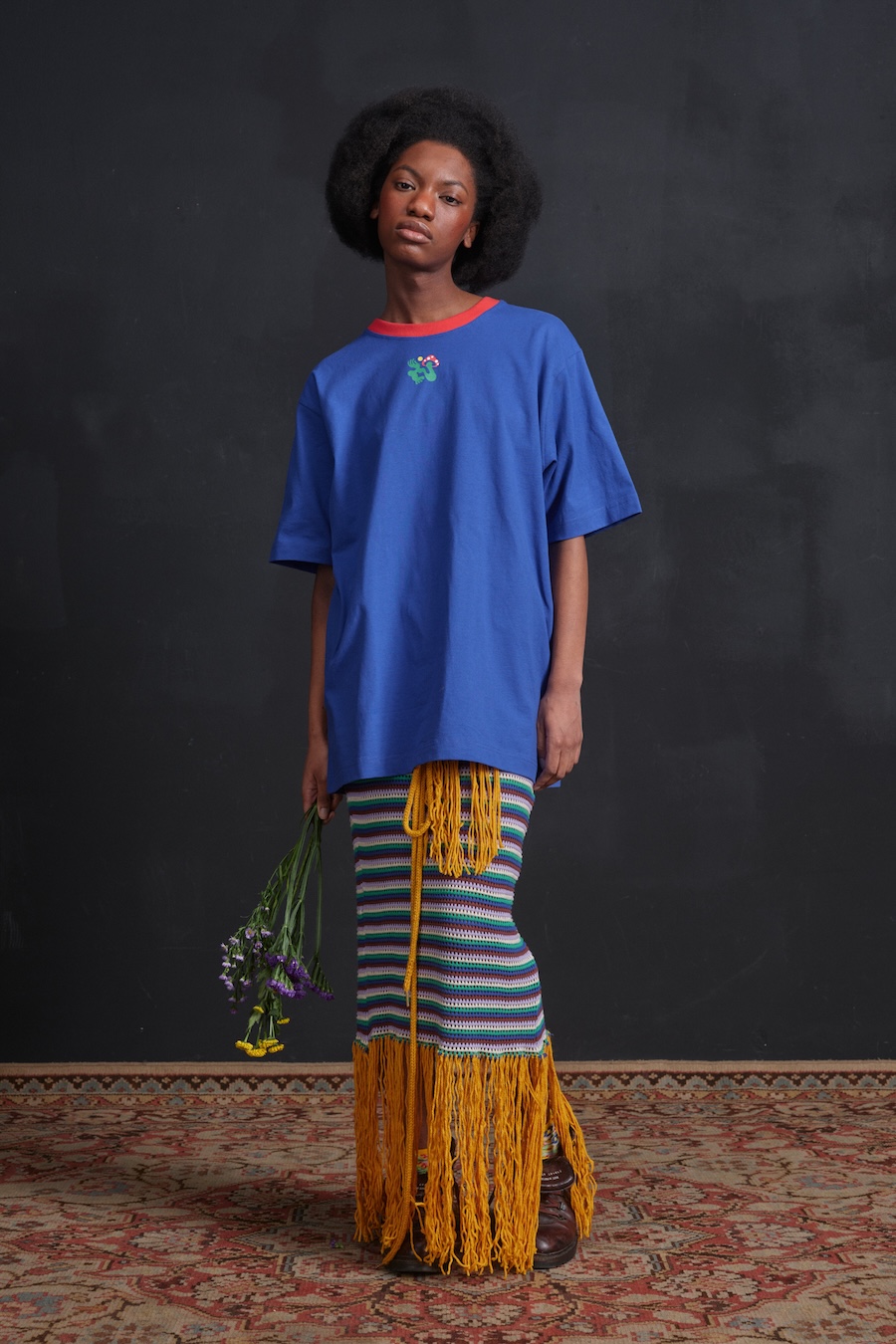 The collection not only embraces themes of transformation, joy, sustainability, and inclusivity, but it also adeptly navigates the line between function and fantasy. Materials played a pivotal role in its design, with fabrics sourced from the brand’s own archive, as well as unique finds gathered over years of travel and study. Each piece is imbued with a memory, a place, a time, a former life, creating a subtle yet personal connection to the wearer.