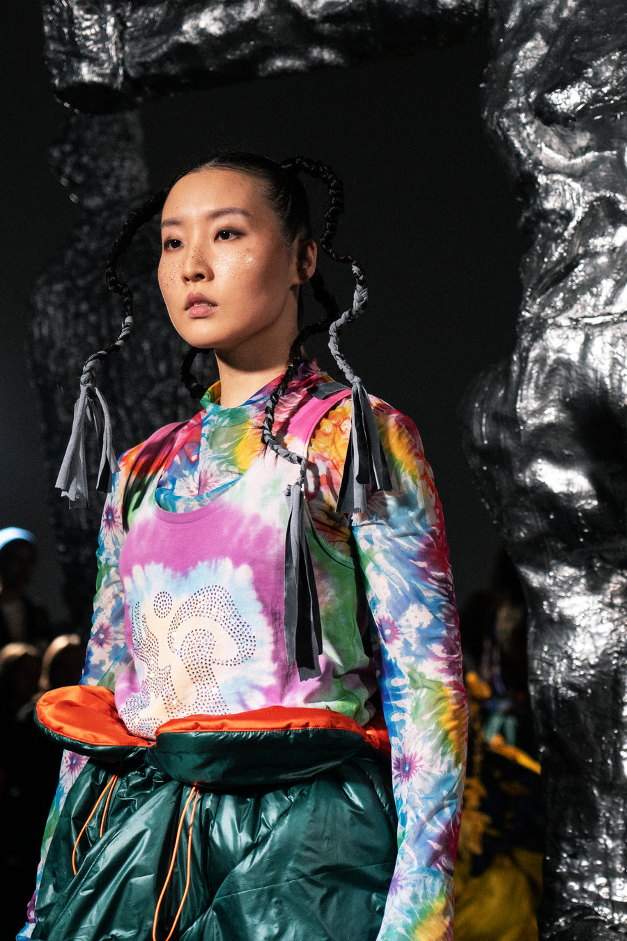 What sets “MØLYBDØMANCY” apart is its commitment to inclusivity and gender-neutral designs that empower self-expression. Each piece is crafted from deadstock fabrics, GOTS-certified textiles, and sustainable Thermore padding, which seamlessly merges artistry with a dedication to sustainability. Tying-dye patterns mirror the unpredictability of lead pouring, while vibrant hues and metallic accents call for boldness and confidence.