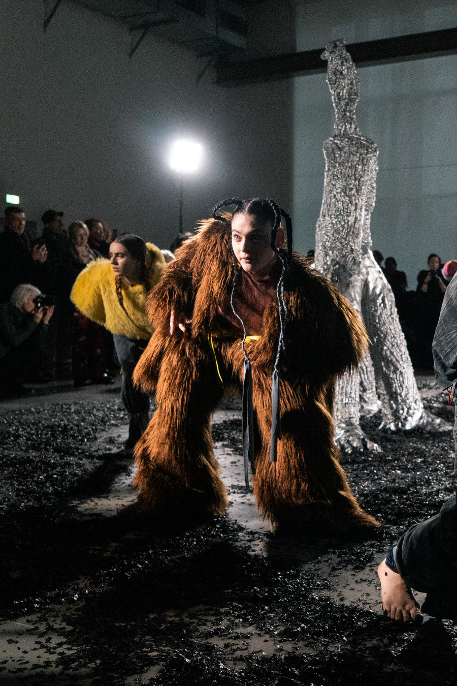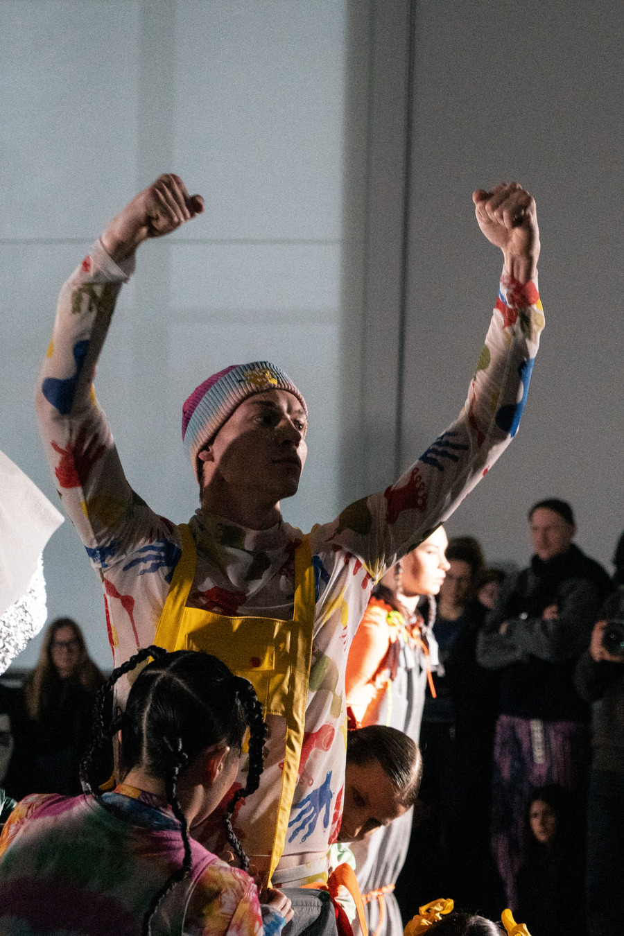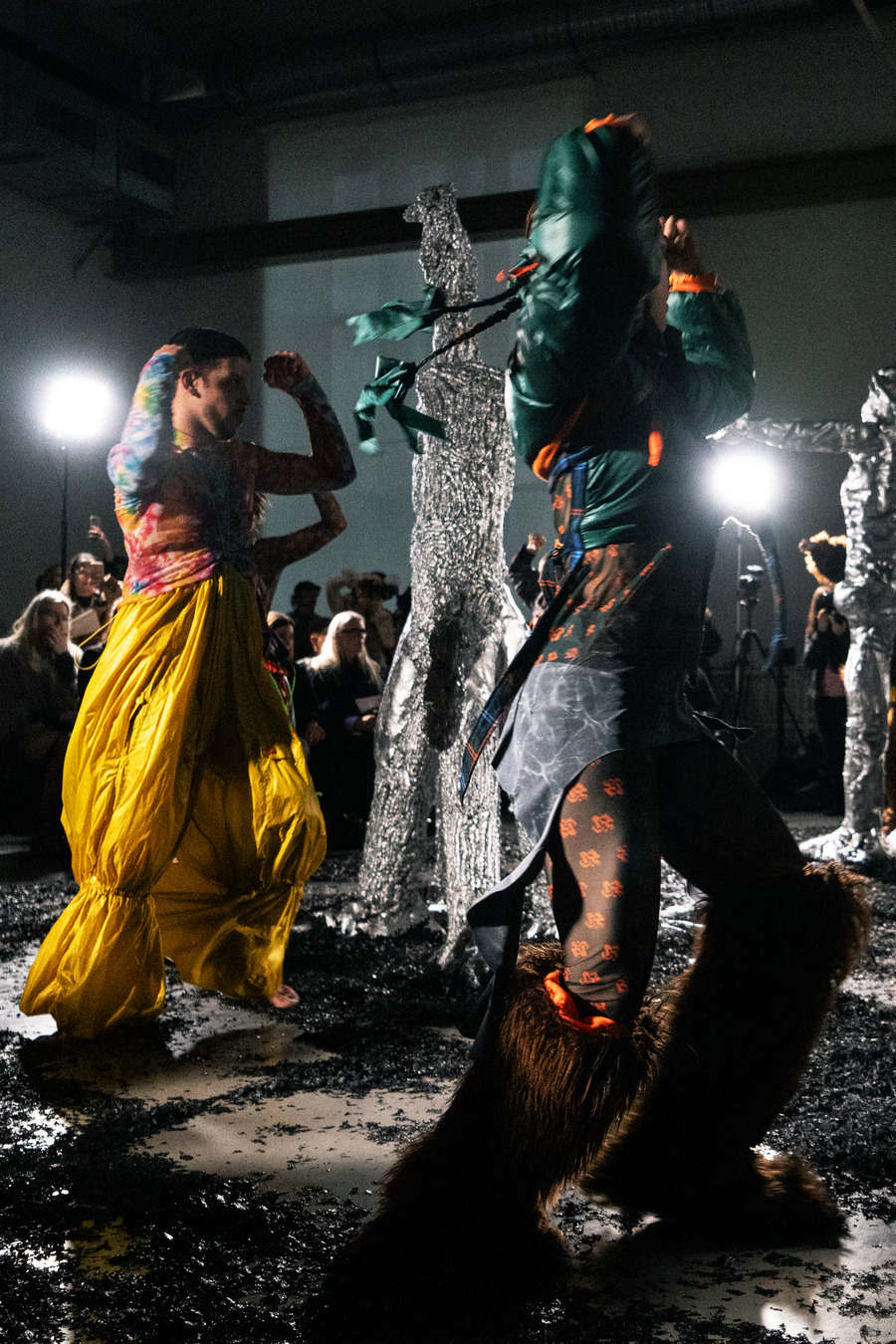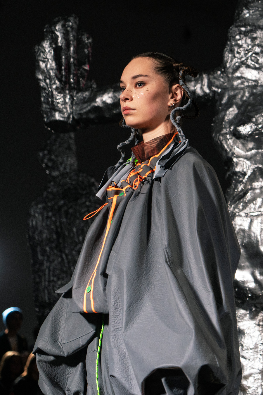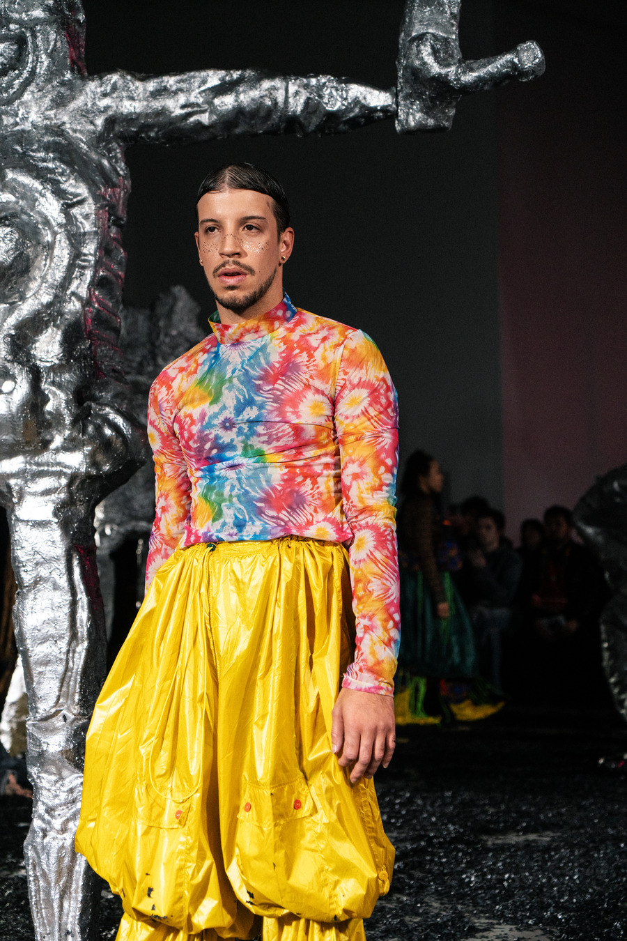 At the same time, we wanted to showcase the full potential of our designs—how they transform, layer, and adapt. Through the interaction of performers, sculptures, and clothing, we aimed to push the boundaries of what fashion can be. It was a risk, but we felt that the audience embraced it. The energy in the room, the way people engaged with the pieces, and the feedback we received all made it clear that our message came across. It was incredible to see our vision come to life and be understood on such a deep level.