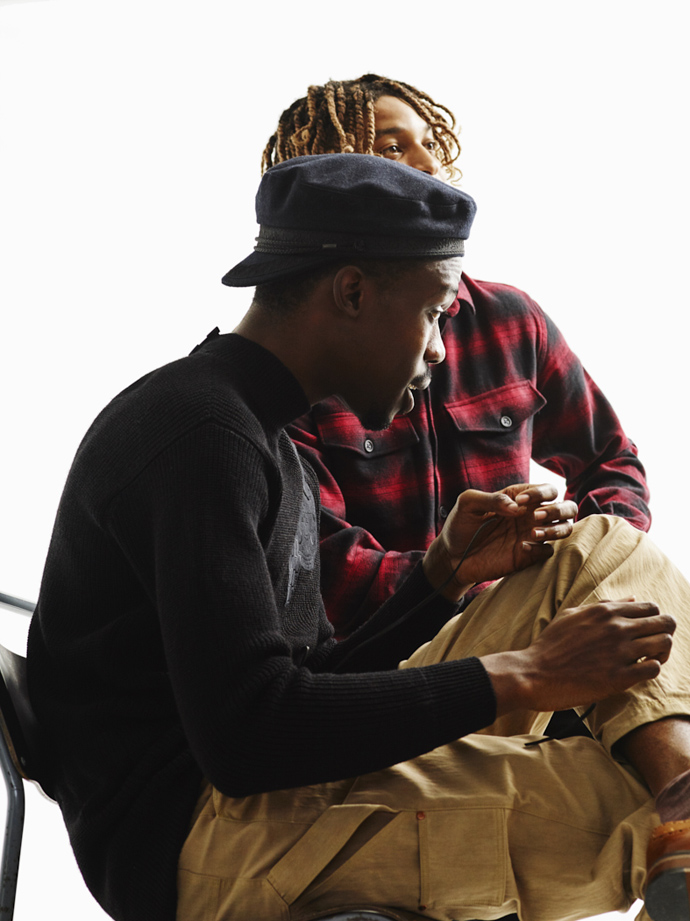 A KALTBLUT exclusive menswear editorial. Photography by Antonello Trio. Art Director & Stylist is Filomena Barberio. Models are Peter Xan and Groovy Mel. Make up by Cristine Dupuys. “A few months ago I came across this team of independent music producers, artists, rappers, models and filmmakers. I was fascinated by their unique identity and the new scene they are forging on the outskirts of London city. Thanks to all the different personalities on this shoot, we played around and brought out the best of everyone’s talents, creating a unique energy that is reflected in the photographs. Peter Xan and Groovy Mel of Sydney Wyatt identified well with the mix of labels I used on set. It was really cool to see how the clothing of BAND OF OUTSIDERS, an iconic menswear brand offering a collection for the international man that doesn’t take himself too seriously, mixed with that of LOHA VETE, a brandname derived from an anagram exploring the line between LOVE and HATE, where authenticity is deeply rooted in the purposefully anti-establishment mind-set. I found it exciting to mix the outfits with MARCELO BURLON items – a multi-culture blend of fashion, music, nightlife – then I used the hand made hats of LAIRD HATTERS for a final touch of class and elements of the natural world together with mystical symbols in the hand crafted jewellery of ROBERT WELLINGTON.” says Filomena Barberio about her editorial.