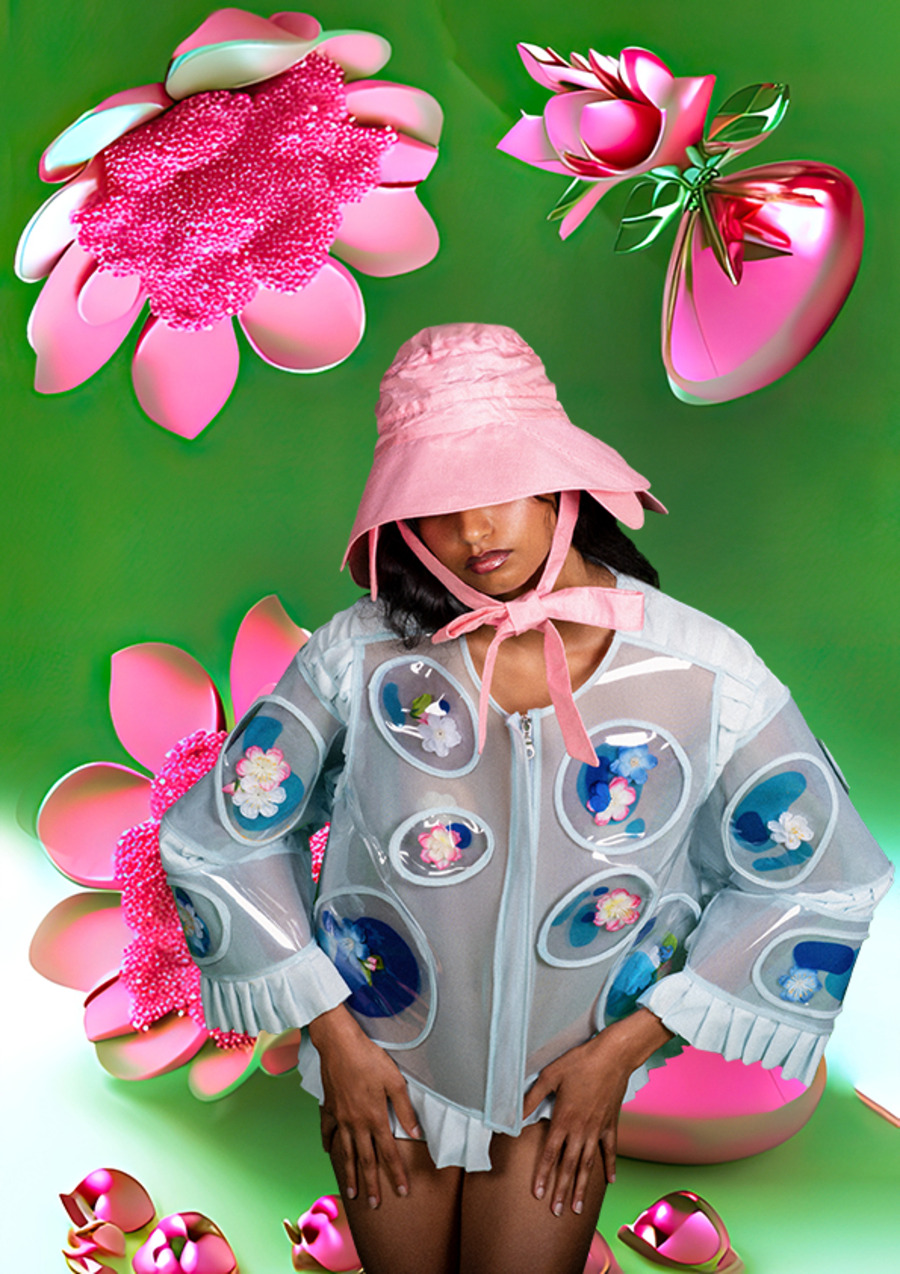 The clothing designs draw inspiration from nature and utilize synthetic fabrics to replicate organic silhouettes. This editorial shoot explores the tension and harmony between the organic and the artificial and the possibilities that arise when the two are combined in unexpected ways. Synthetic Garden invites viewers to contemplate the boundaries of nature and technology and to appreciate the unique aesthetic that emerges from their fusion.