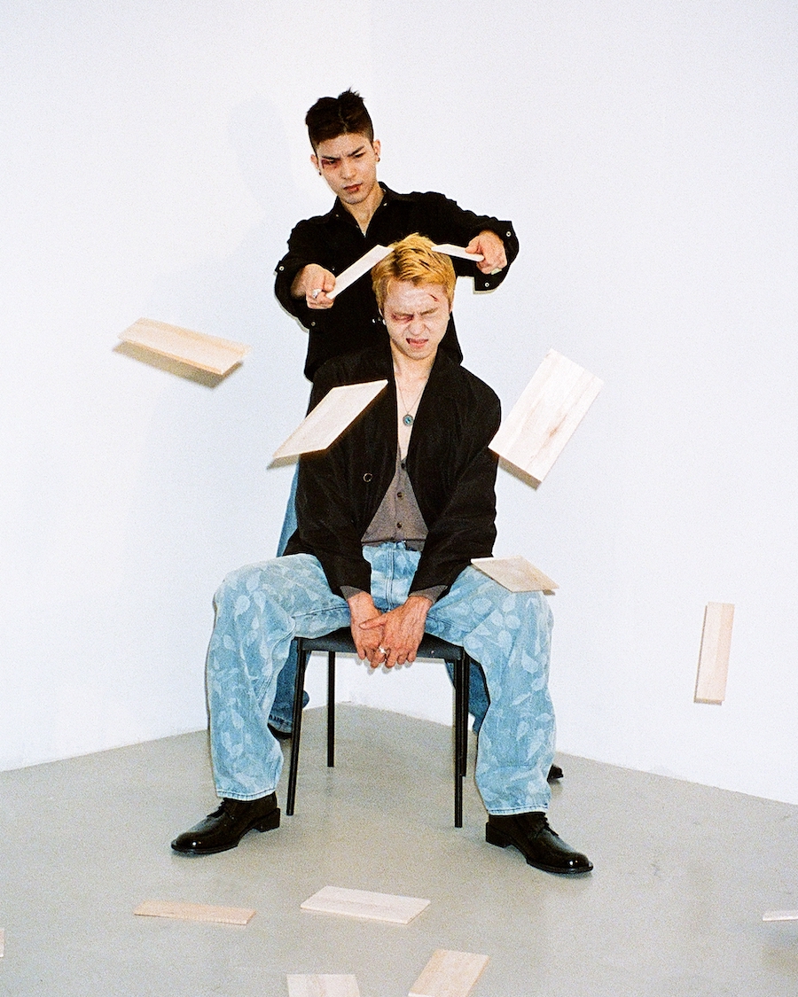 A KALTBLUT exclusive. Directing & Photography by Kim Sun-ho. Models are Jeong Hyeon-ryong and Brian. Hair & Make-up by Gong Hye-min. Styling by Lee Da-eun. Fashion by Maison Margiela, Vetements , Ami, Lemaire, Gmbh, Fear Of God, Allsaints, Our Legacy, Beslow, Humant, Lieu Homme, Sonshinbal, Nouvmaree, Sasquatchfabrix, Waar, Rombaut, Rangolla.
