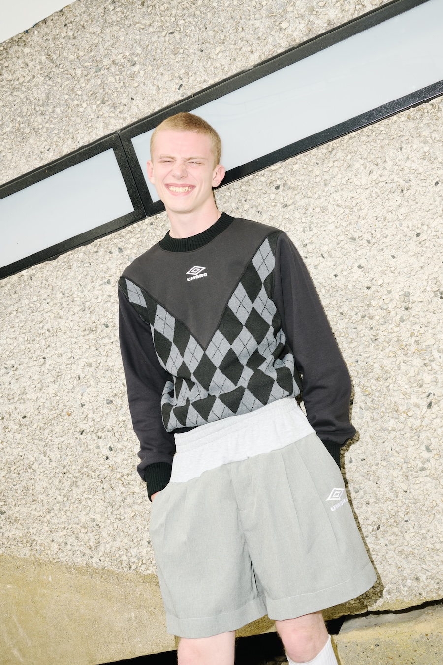 The inspo? Jones’ grandad. A man who treated clashing like a sport in itself: dress shirt and cardigan up top, grey joggers down below. Sweatshirt with formal trousers and proper shoes. No rules, no shame, just vibes. That gloriously awkward British approach to getting dressed becomes the backbone of Umbro x Adam Jones, a collection that thrives on things not quite matching but somehow looking incredibly perfected.