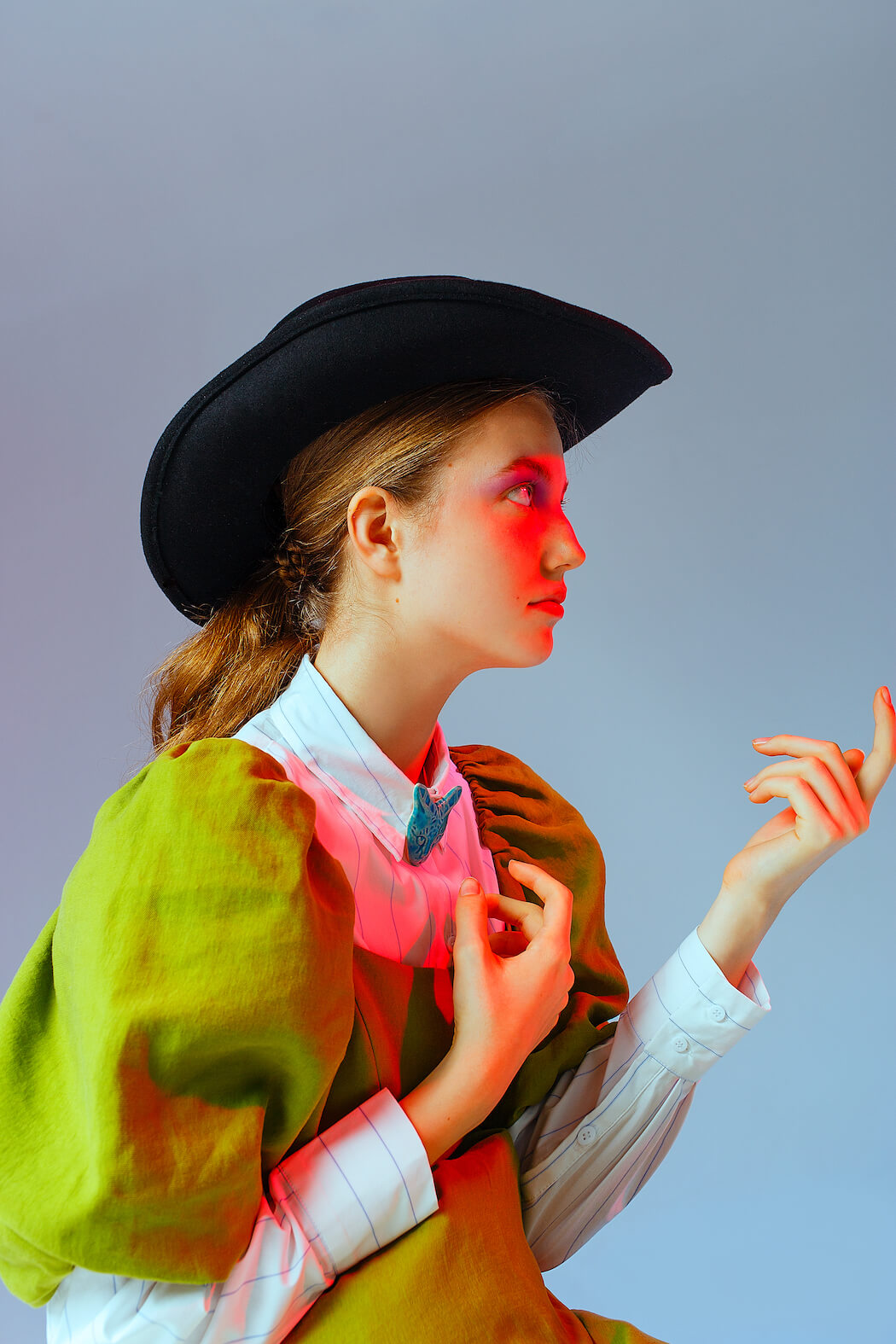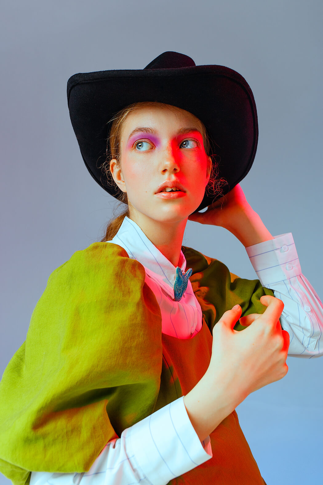 A KALTBLUT exclusive womenswear editorial. Photography by Igor Iden. Model is Alisa signed at Avant Models. Styling by Aelita Akhmedova. Make-Up by Emma Shrayber. Hair by Anna Orga. Brands are Chain Reaction, Zara, Venezia, Stetson, Natalia Nalivayko, Dina Collection, Guess, Strogo Vintage, Ruxara, Mineral Weather, Valentino, Enzo Logano and Ostory.