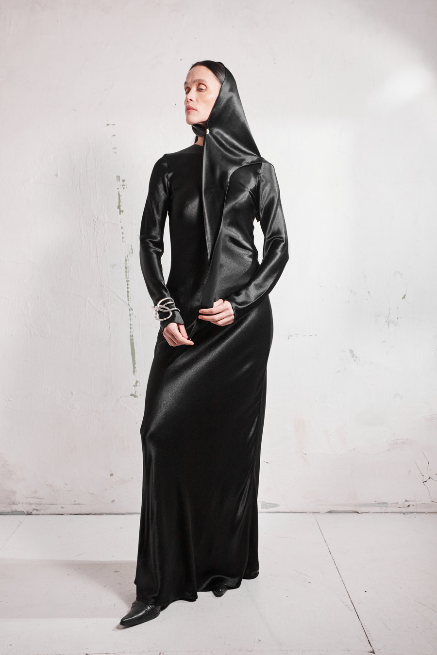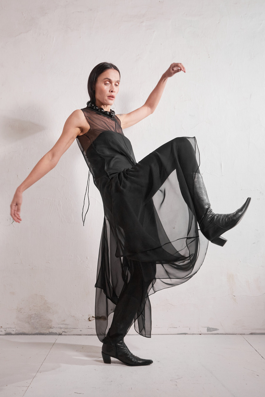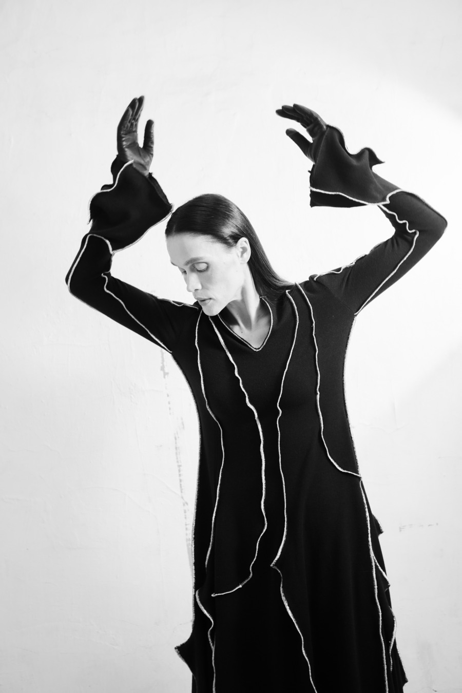 Designer Tamriko Keburia skillfully executes her vision in rich variations of black, echoing a timeless elegance that is the hallmark of the brand. From flowing dresses to structured outerwear, every piece radiates sophistication and fortitude.